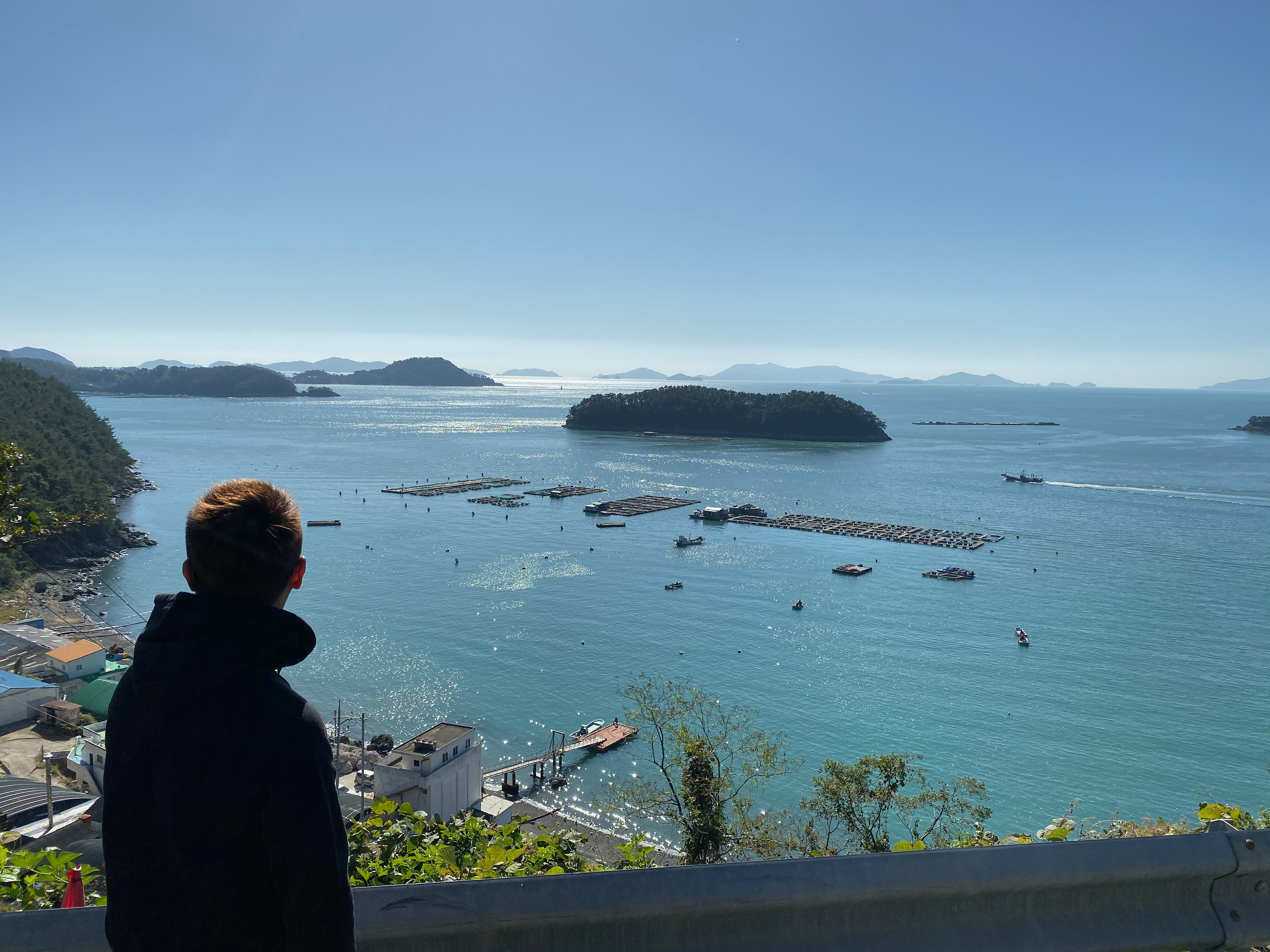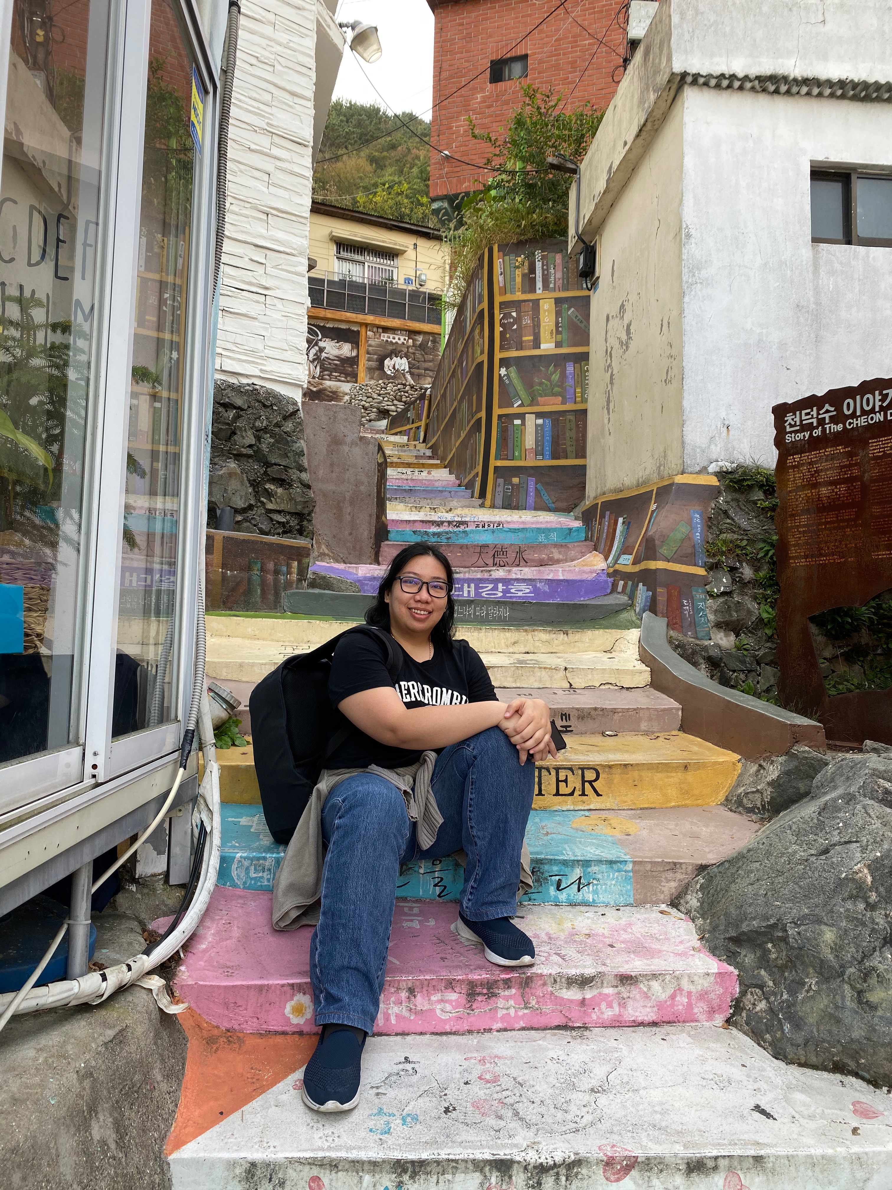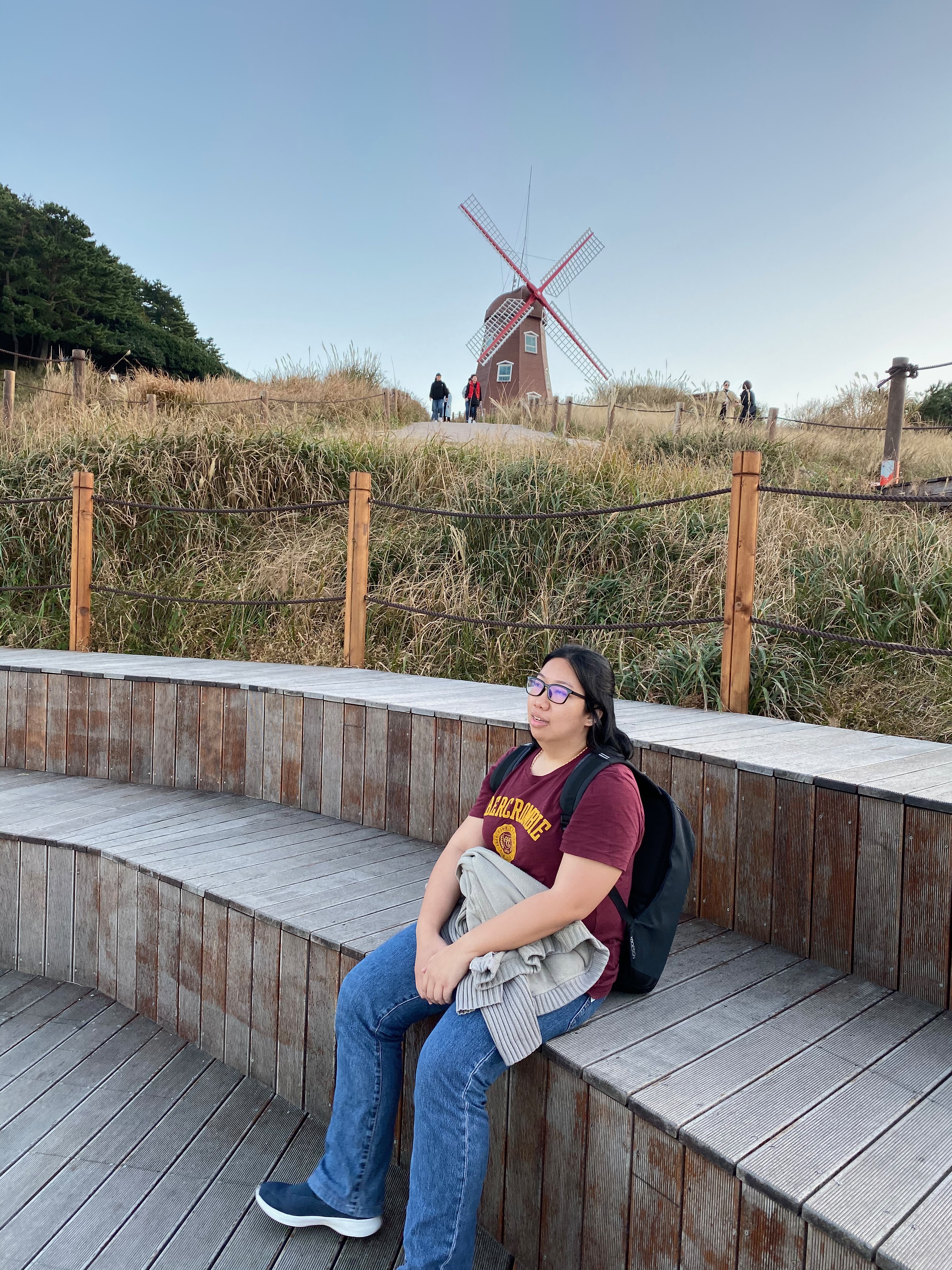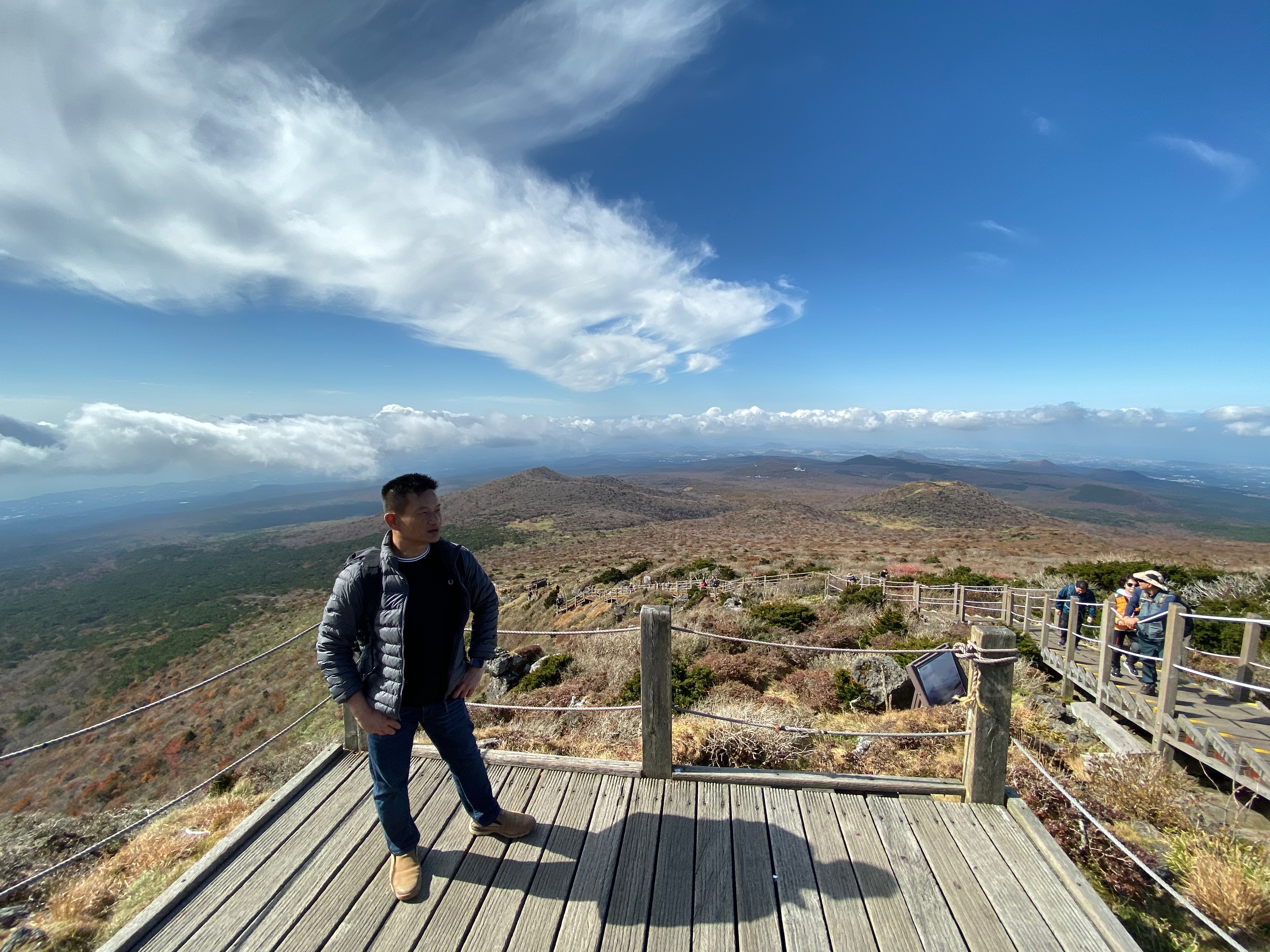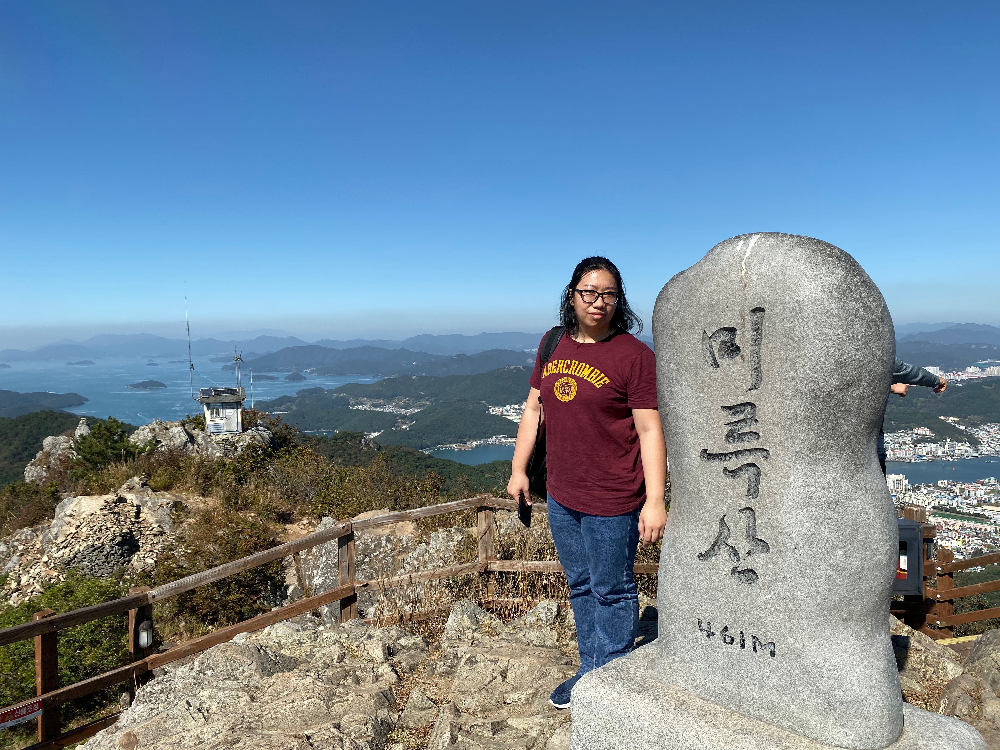 Taking a wefie in the pavilion with Hwaseomun in the background