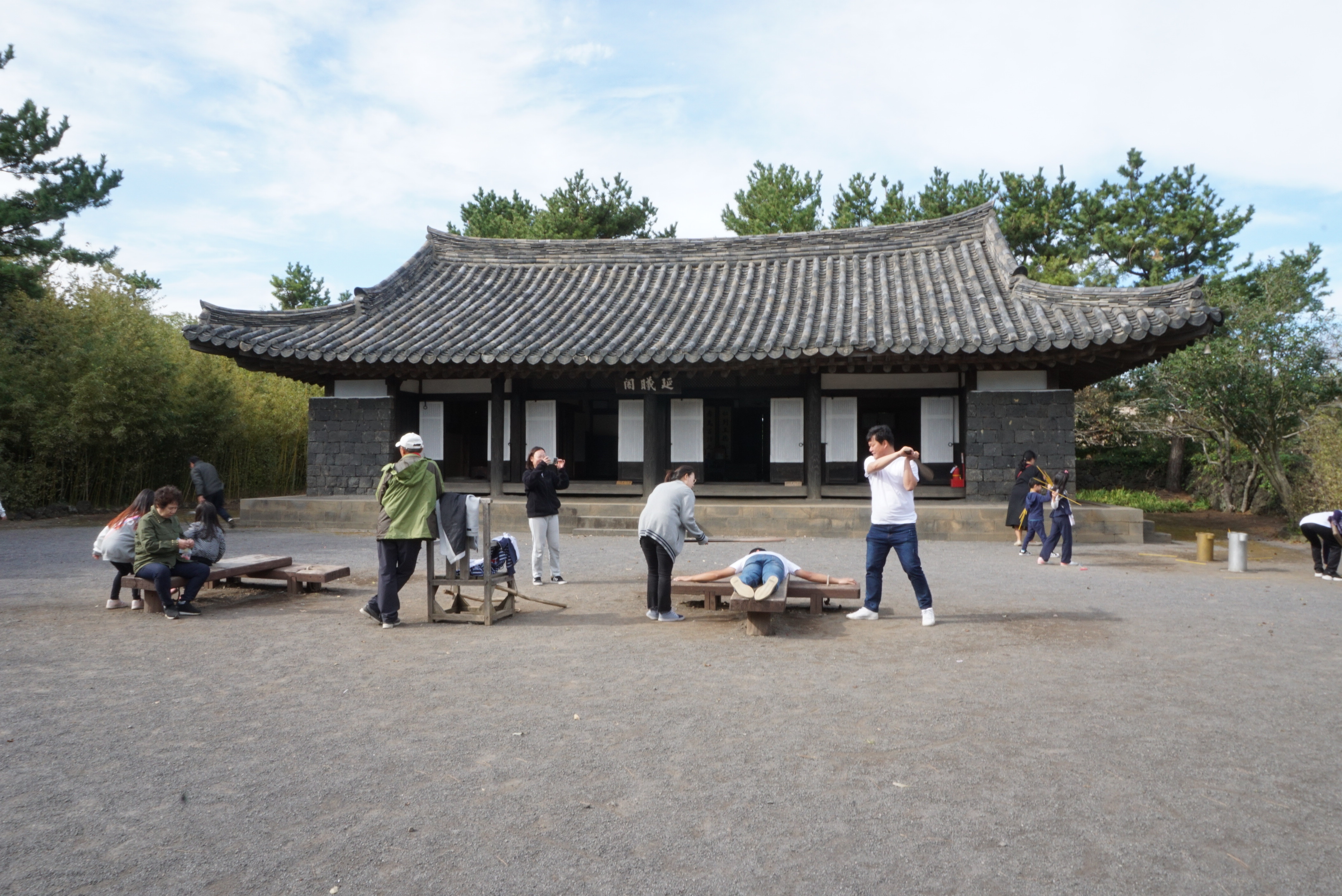 My friends and I headed back onto the wall and continued our stroll along Hwaseong Fortress. Some 5 mins later we came to another sentry post. This sentry post is built on higher grounds, which gave us a good view of Buksumun and parts of the Hwaseong Fortress. There are some very good photo spots in this sentry post, where we spent quite a bit of time to take photos. From the open-air pavilion-like sentry post, Hwaseong Fortress resembles a mini Great Wall of China. After taking photos we continued our walk on Hwaseong Fortress towards the next landmark on the wall. Some 30 mins of uphill and downhill walk, we arrived at Dongjangdae, which was used as a training ground for the Korean troops for over two centuries. Dongjangdae is enclosed with stones walls and was closed at the time of our visit. These stone walls surrounding Dongjangdae was low enough for us to peep over and see the command post inside the wall. Beside Dongjangdae, there is a large open area which was used these days for tourists to experience archery training of Korean troopers.
