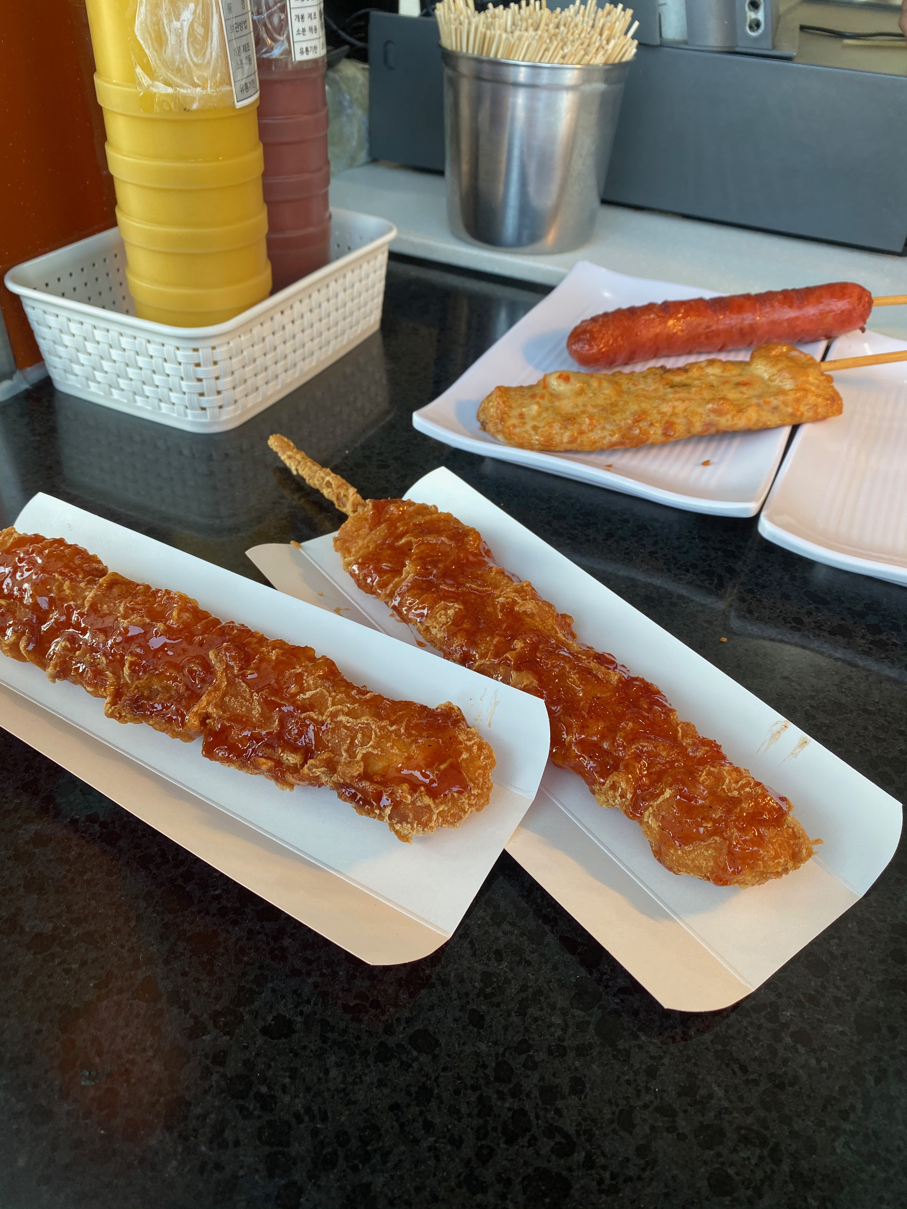 To get to Suwon, we took the 1½ hr subway ride from Seoul Station to Suwon Station. Suwon is in a neighbouring Gyeonggi province south of Seoul. Suwon Station is bustling with life with locals going about their daily life. As we felt a little hungry, we wanted to get lunch before we head over to Hwaseong Haenggung. My friend and I was here three years ago and stumbled into a night market and some shops on either side of the night market, we knew we might find some food there. We crossed the road came to the street where we remembered where the night market was. We were glad that the market is open in the day and the street is very lively with mostly young Koreans hanging out in this area. There are shops on either side of the street with some of them being restaurants. In the centre of the street, there are some roadside stalls set up selling street food. We walked around to check what our lunch options are and ended up in a street that sells fresh produces from meat to fruits and even seafood. Looks like we have stumbled into a local market. As we saw no restaurants are in sight, we headed back towards the street opposite Suwon Station and settled for KFC instead. There were simply too many restaurants here.