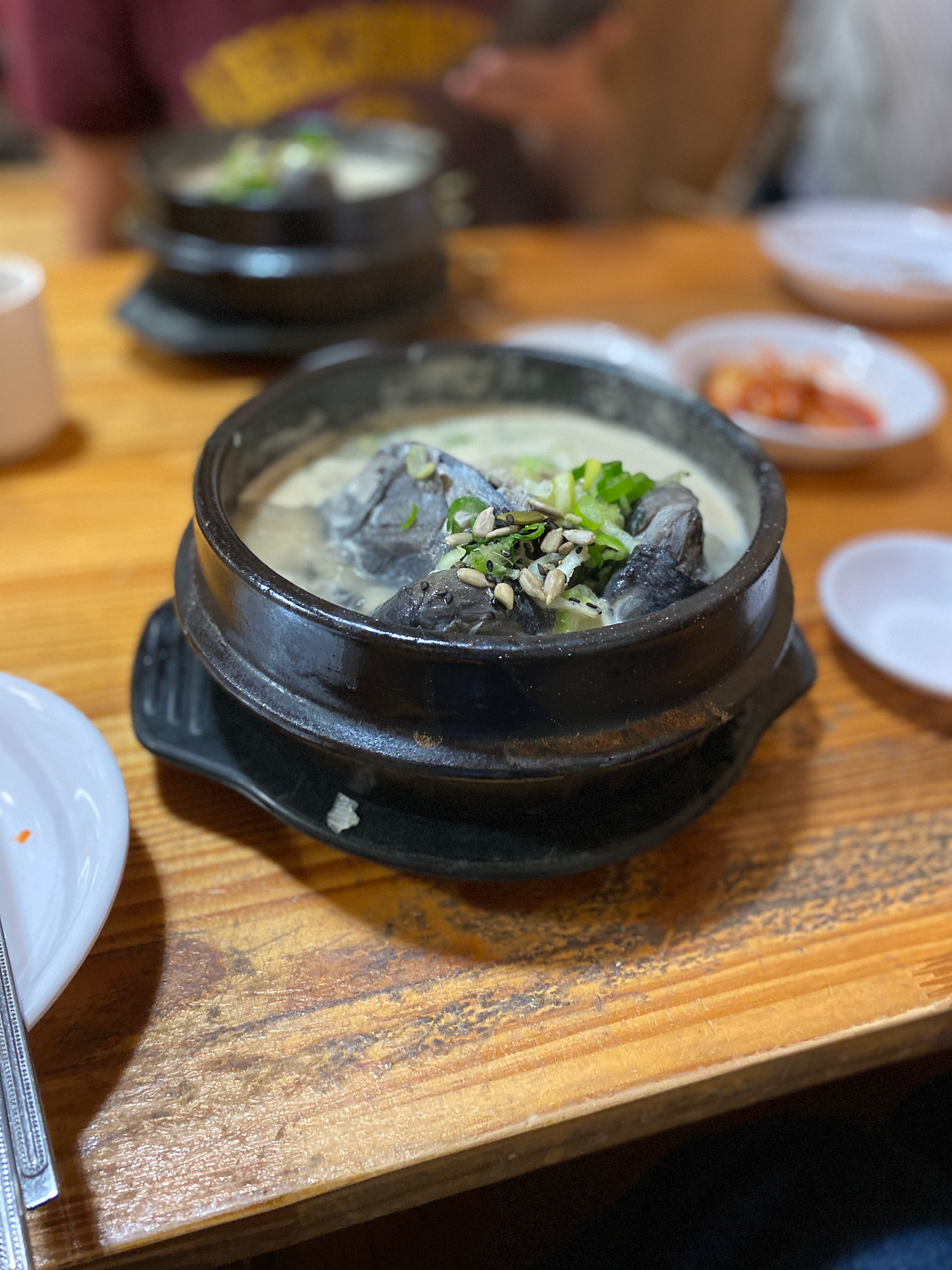 As we were on the subway, I noticed that we would pass through the station where Dragon Hill Spa is. A quick insertion of activity, we decided to stop at the station for the spa. One of the experiences that we set out to do when planning this trip is to try out the Jjimjilbang, the traditional Korean sauna. Dragon Hill Spa is a Korean jjimjilbang caters more for tourists than locals, nonetheless, it is a good place for us to try out jjimjilbang. We alighted the subway at Yongsan Station and made our way on foot to Dragon Hill Spa, which is located next to the station. The moment we enter Dragon Hill Spa, we were taken aback by the number of people waiting in line. There is a crowd of at least 30 people at the entrance, part of a tour group waiting for their turn to enter the jjimjilbang. One of the staff saw us and waved us to go around the crowd and immediately served us. The jjimjilbang costs KRW16,000 per adult and we were given a key tag that also doubles up as a credit tag which we used to buy things from and settle the bill when we exit. We got into the front area of the jjimjilbang and had to take off our shoes and place them in the locker provided. The locker number corresponds to the number on the tag we were given. Male and female changing rooms are separated by level, I gave direction to one of our friends on where to go and what to do and made our way up to the male changing room. In the male changing room, there is a locker for us to put our clothing and a counter for us to take the size of the clothing that we would wear when going in the main sauna area. We took a shower at the wet area and spent some time soaking in the hot spring water. The hot spring soak was very effective in relieving the aches from our travels in South Korea so far. After soaking for 10 mins, we got dressed and went to the main area to meet our other friend.