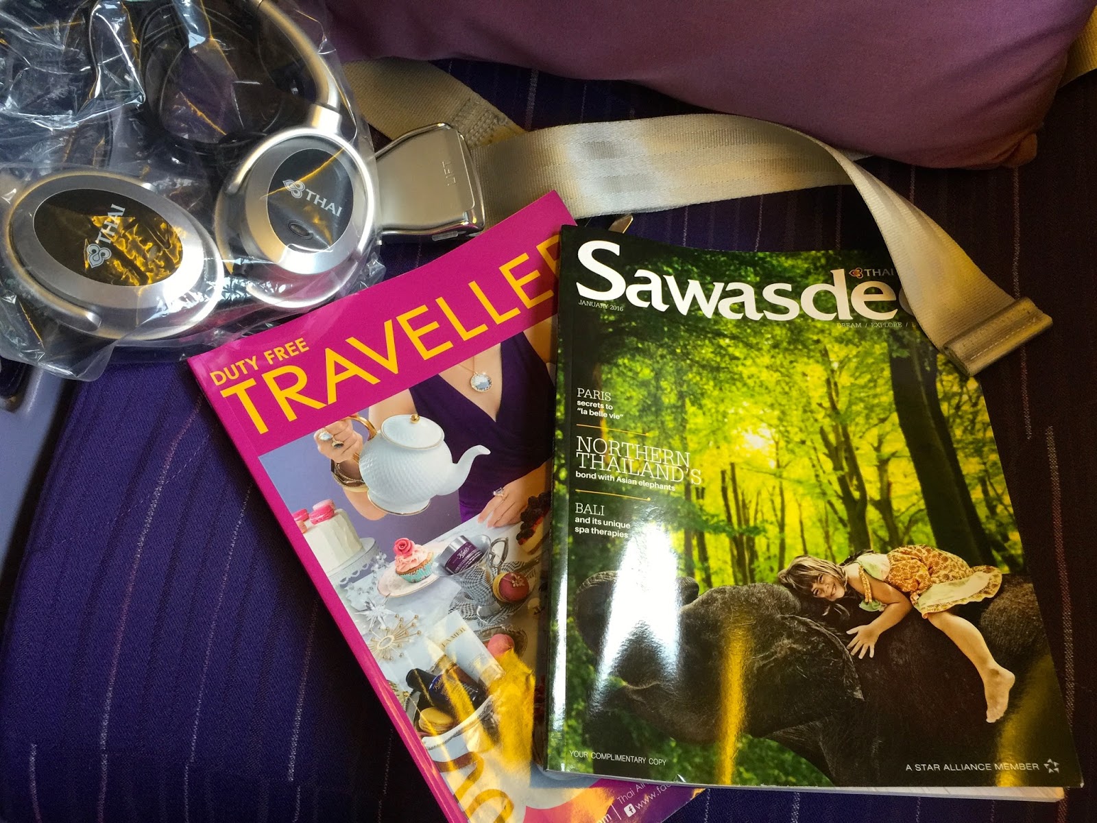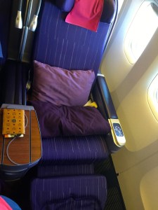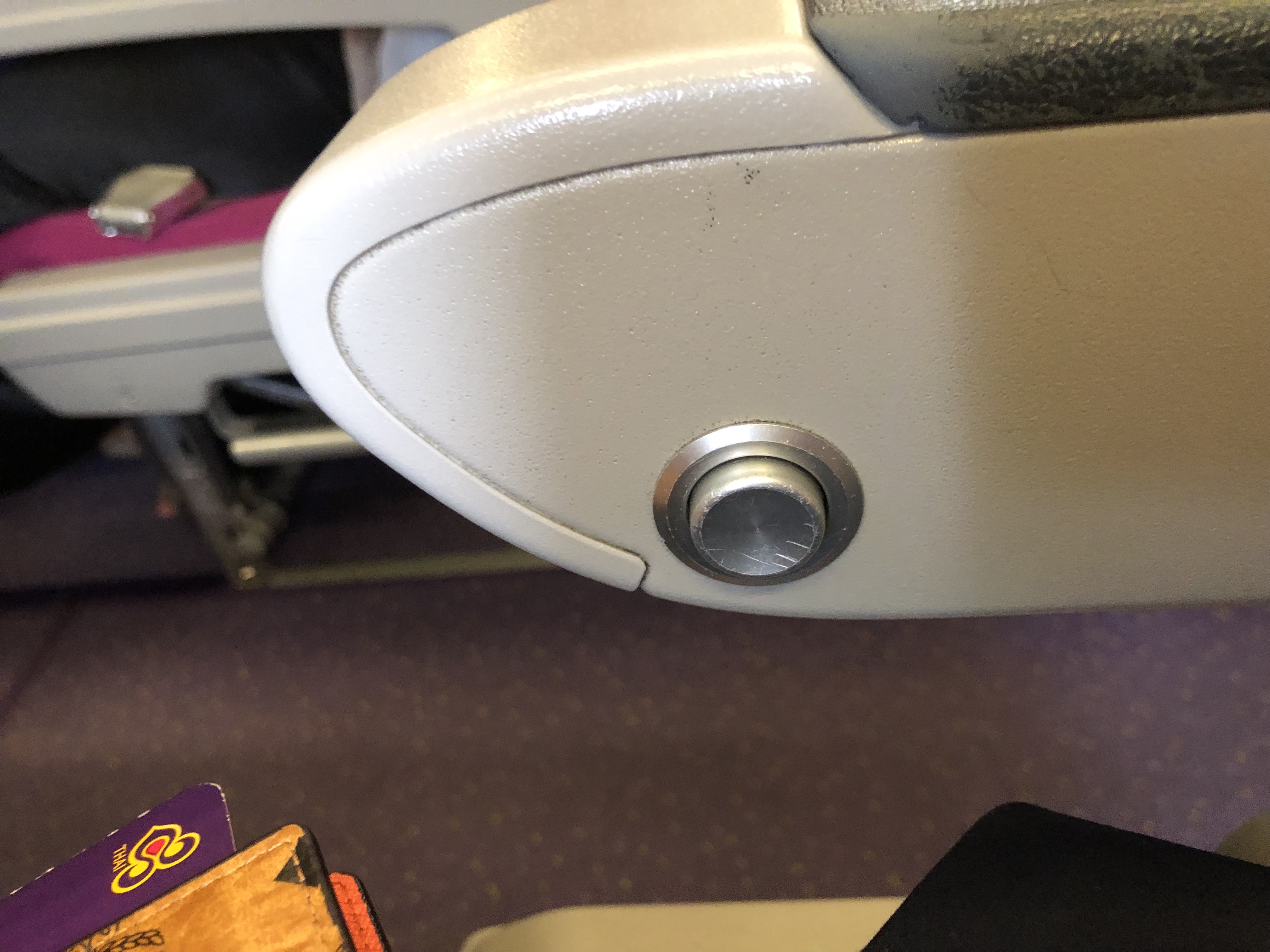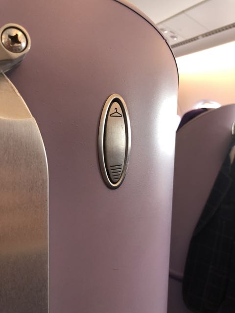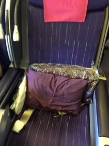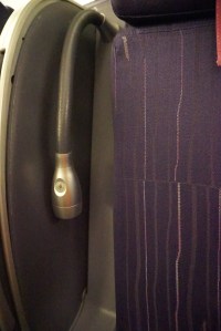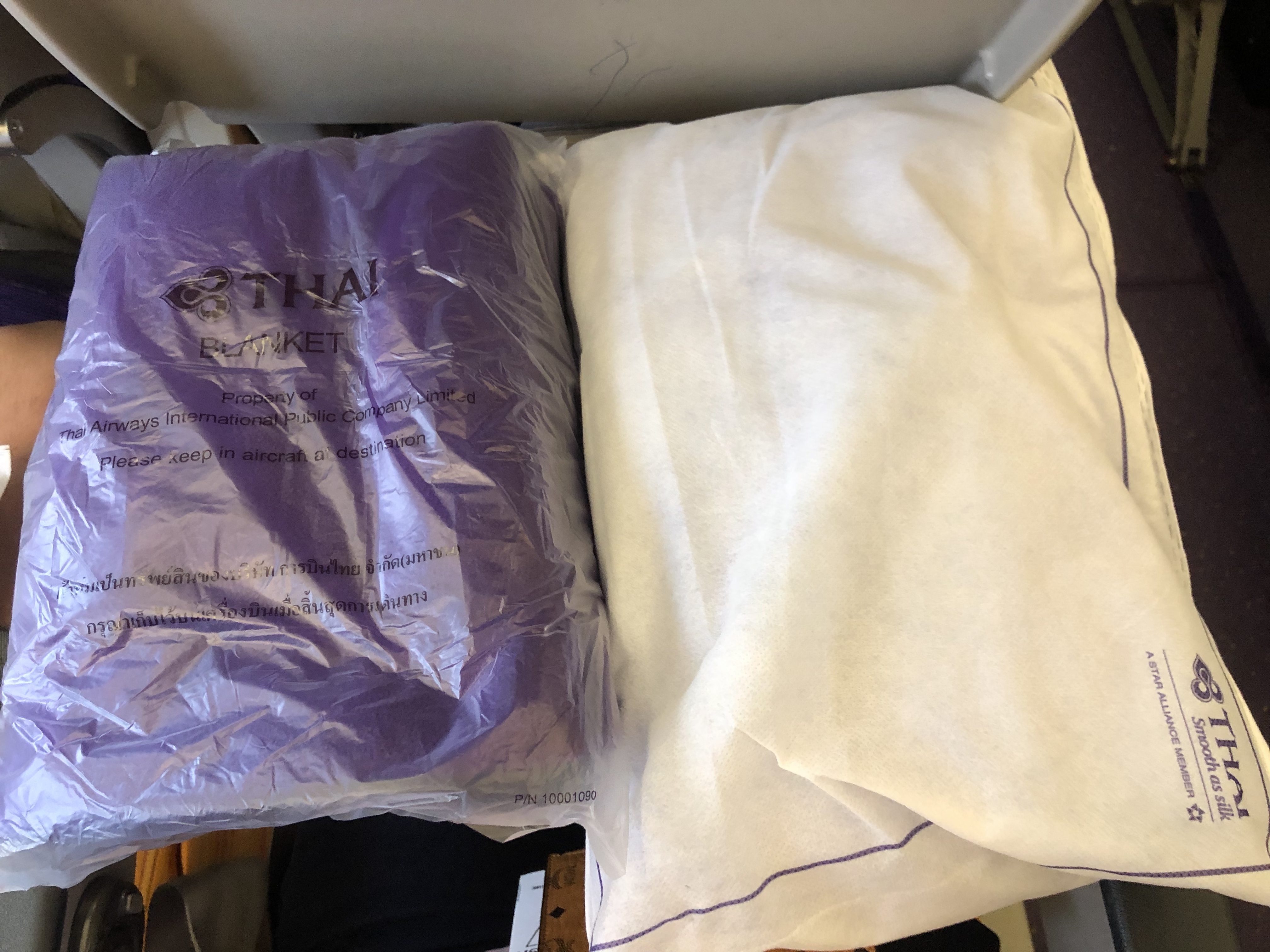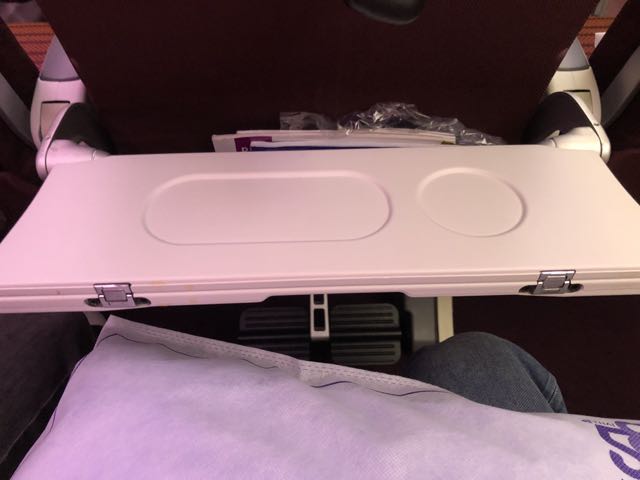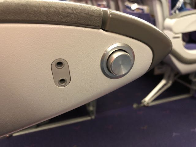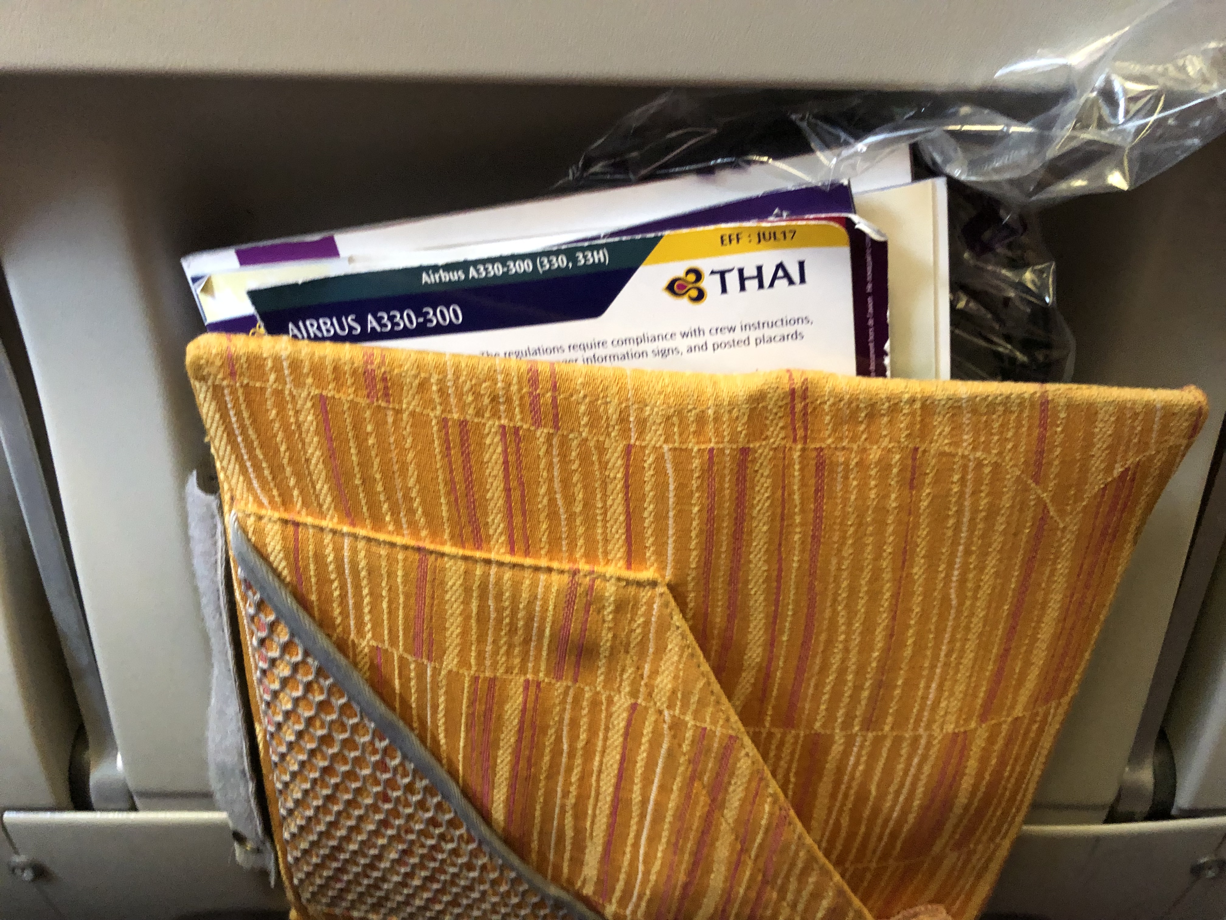 The tray table in the Economy Class cabin onboard Thai Airways A330-300 is rather large. The single fold tray table is able to hold the meal tray with space available to put a can of drink and the cup without cramping the entire tray table. I tend to find the tray tables, especially those that have bi-fold functions, on the newer aircraft to be a little tight on space as compared to the one on board the Thai Airways A330-300. Coat hooks are available in the Economy Class seats, which are located on the side of the seat in front of me. The placement of these hooks is a little odd as I cannot think of a way of hooking coats without disturbing the passenger in front of me. As in the Economy Class cabins onboard all other airlines, the reading light is located on the ceiling above the seat. However, there are no air vents on the ceiling. When boarding, pillows and headphones are placed in the seat, blankets can be requested from the flight attendants who are very happy to bring me one when requested for.