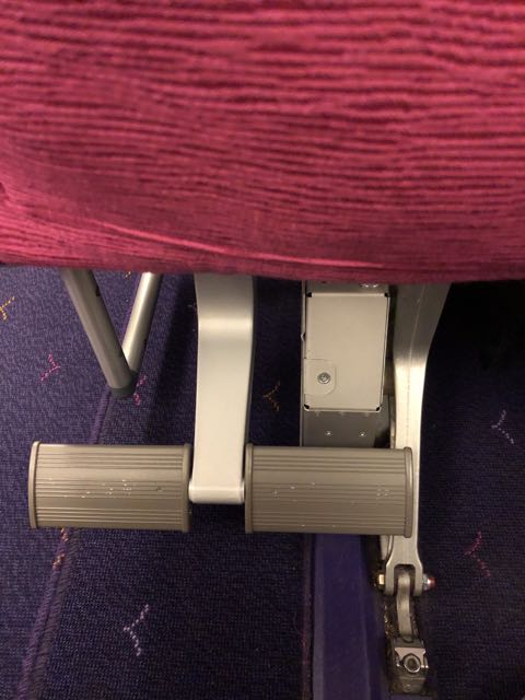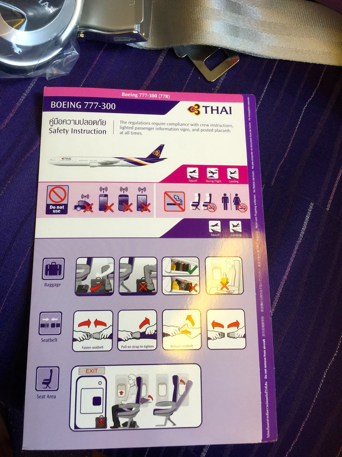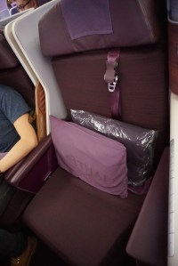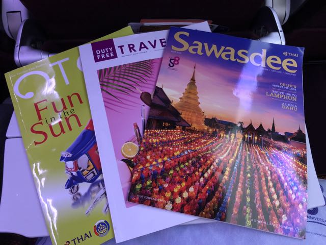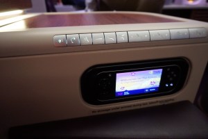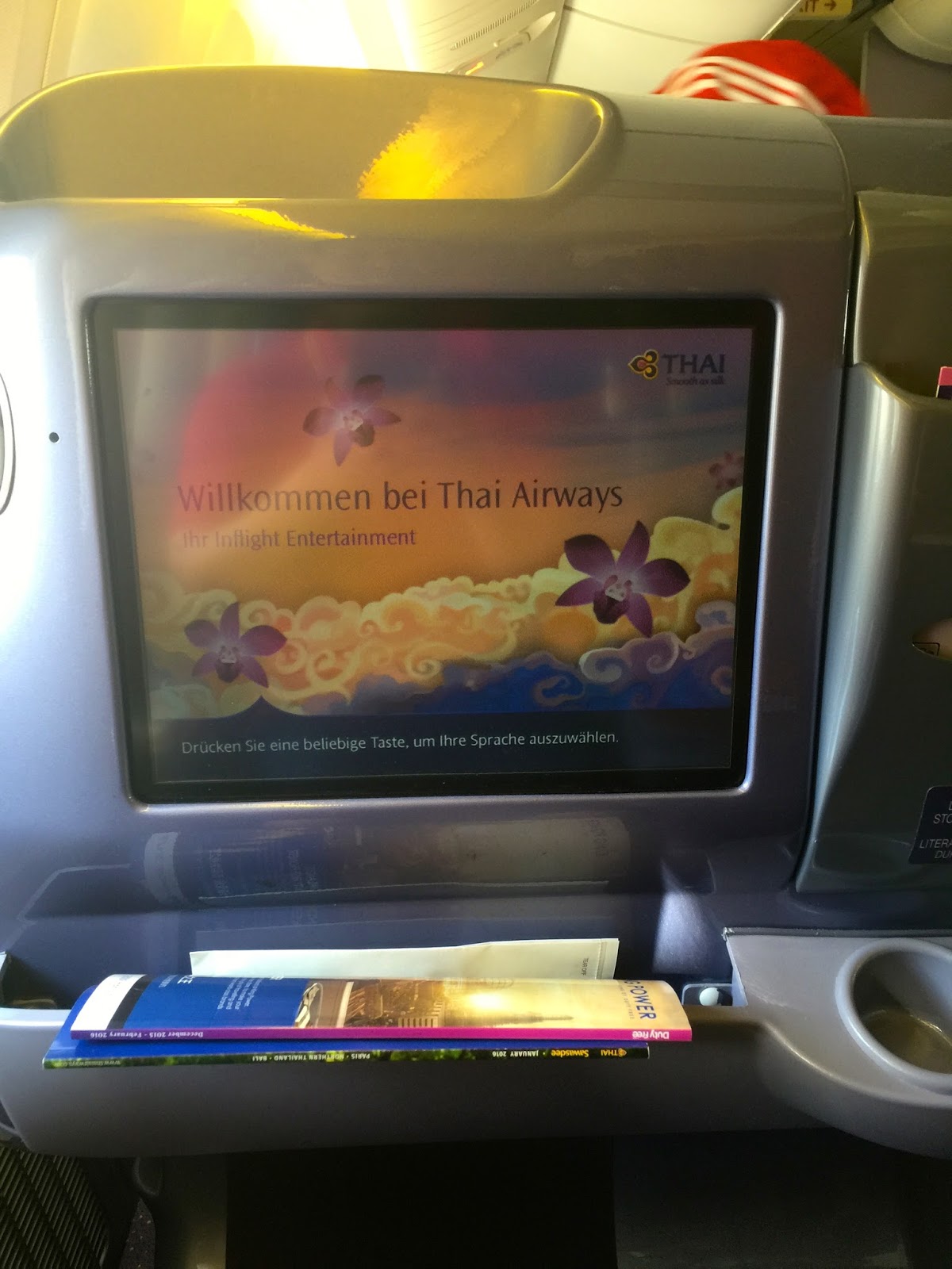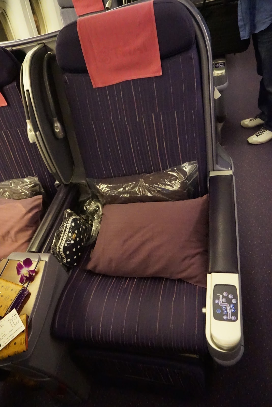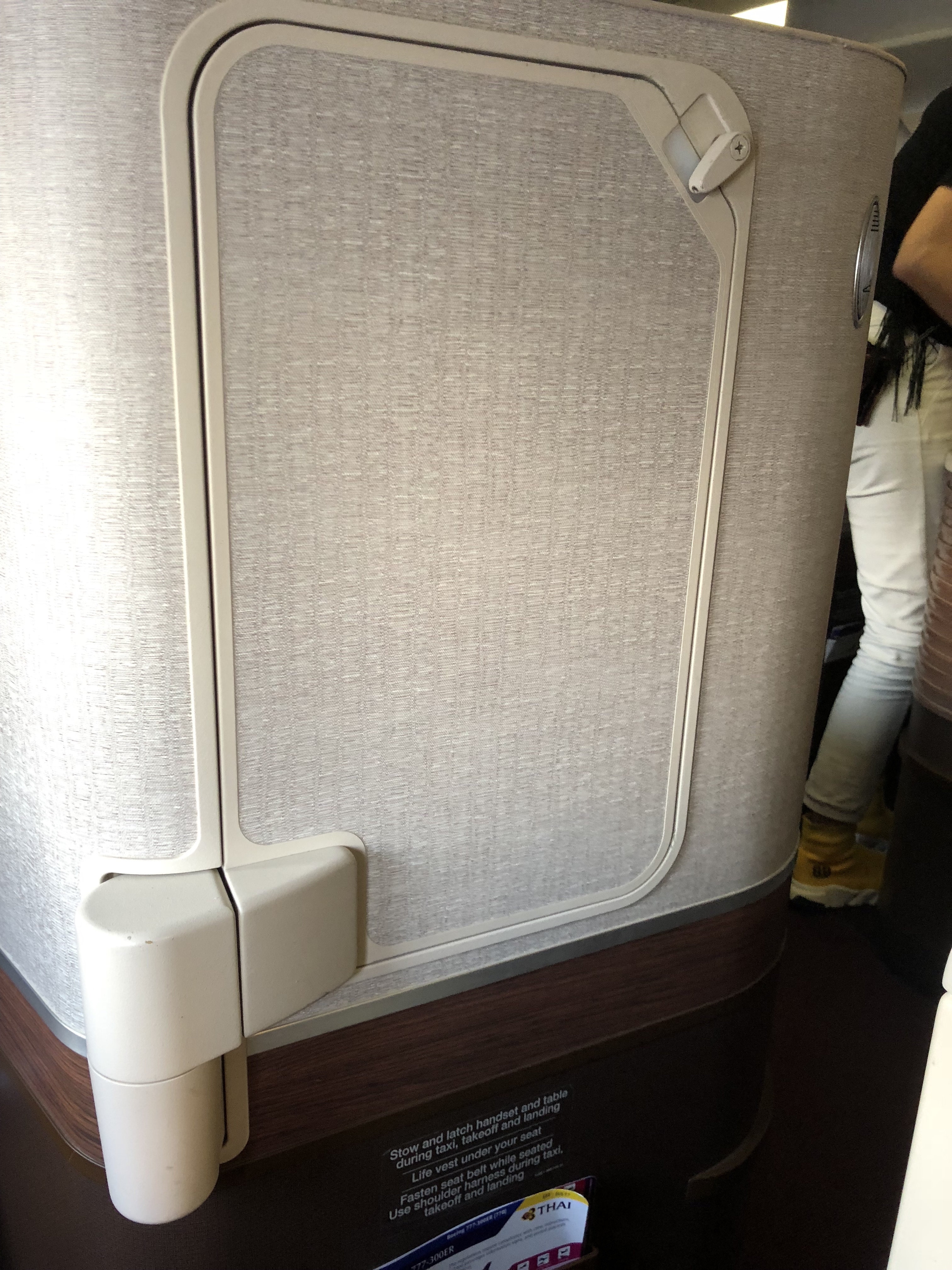 The tray table in the Economy Class cabin onboard Thai Airways A330-300 is rather large. The single fold tray table is able to hold the meal tray with space available to put a can of drink and the cup without cramping the entire tray table. I tend to find the tray tables, especially those that have bi-fold functions, on the newer aircraft to be a little tight on space as compared to the one on board the Thai Airways A330-300. Coat hooks are available in the Economy Class seats, which are located on the side of the seat in front of me. The placement of these hooks is a little odd as I cannot think of a way of hooking coats without disturbing the passenger in front of me. As in the Economy Class cabins onboard all other airlines, the reading light is located on the ceiling above the seat. However, there are no air vents on the ceiling. When boarding, pillows and headphones are placed in the seat, blankets can be requested from the flight attendants who are very happy to bring me one when requested for.