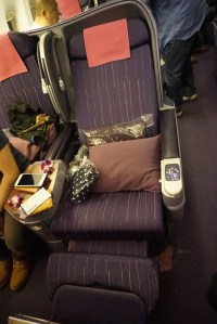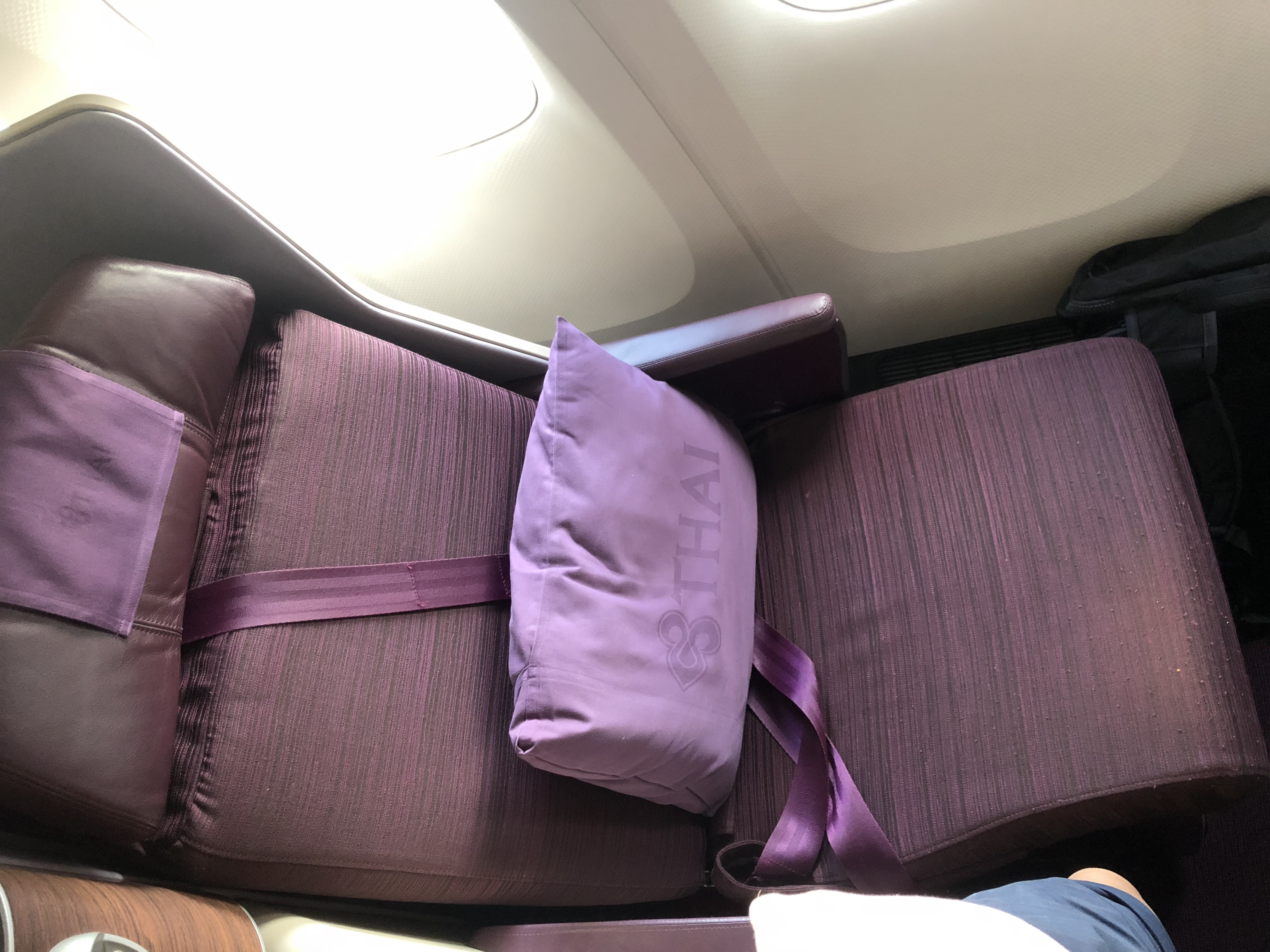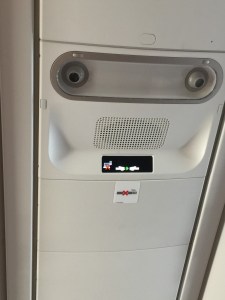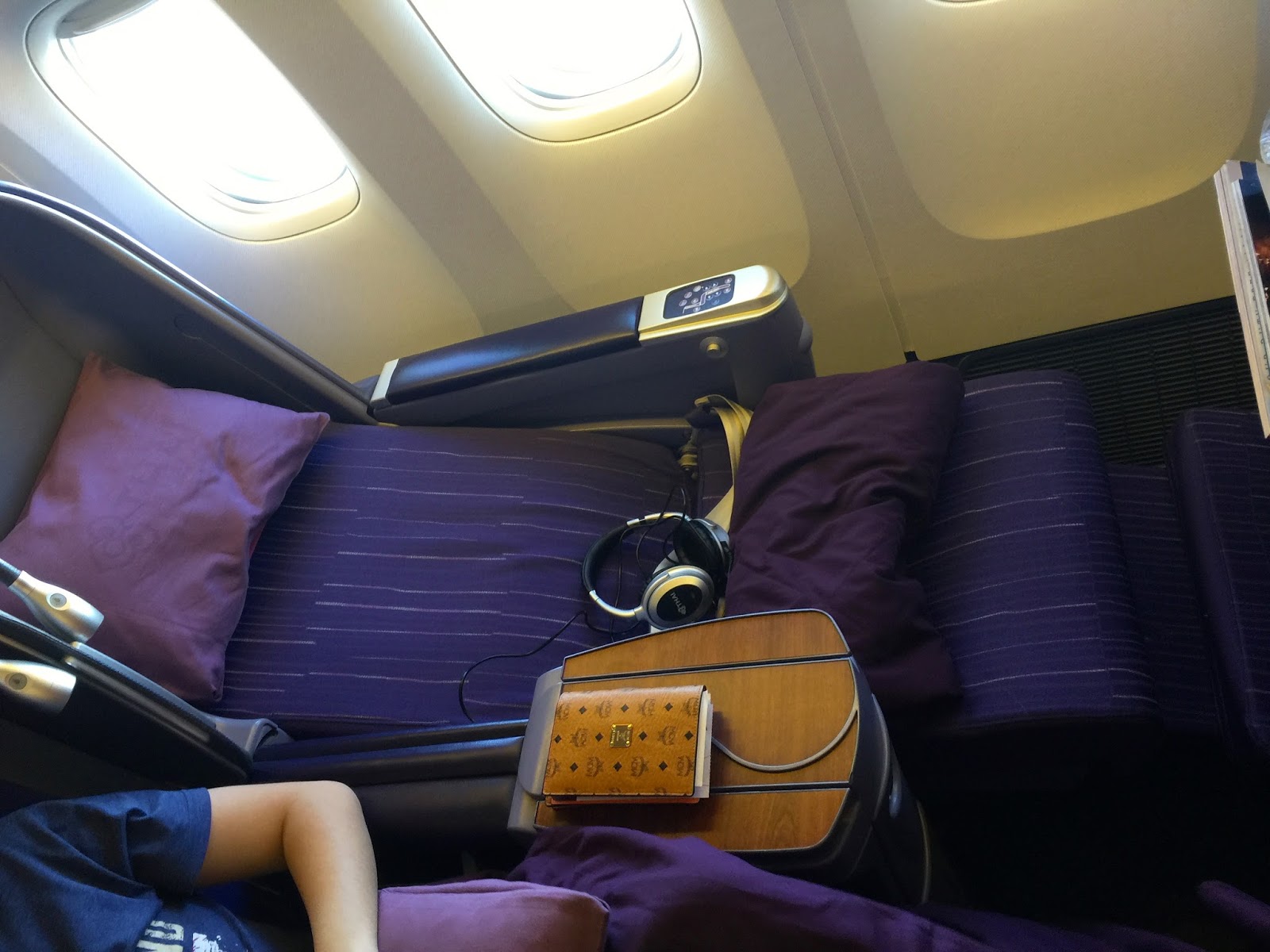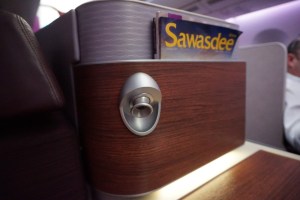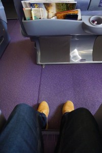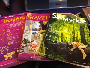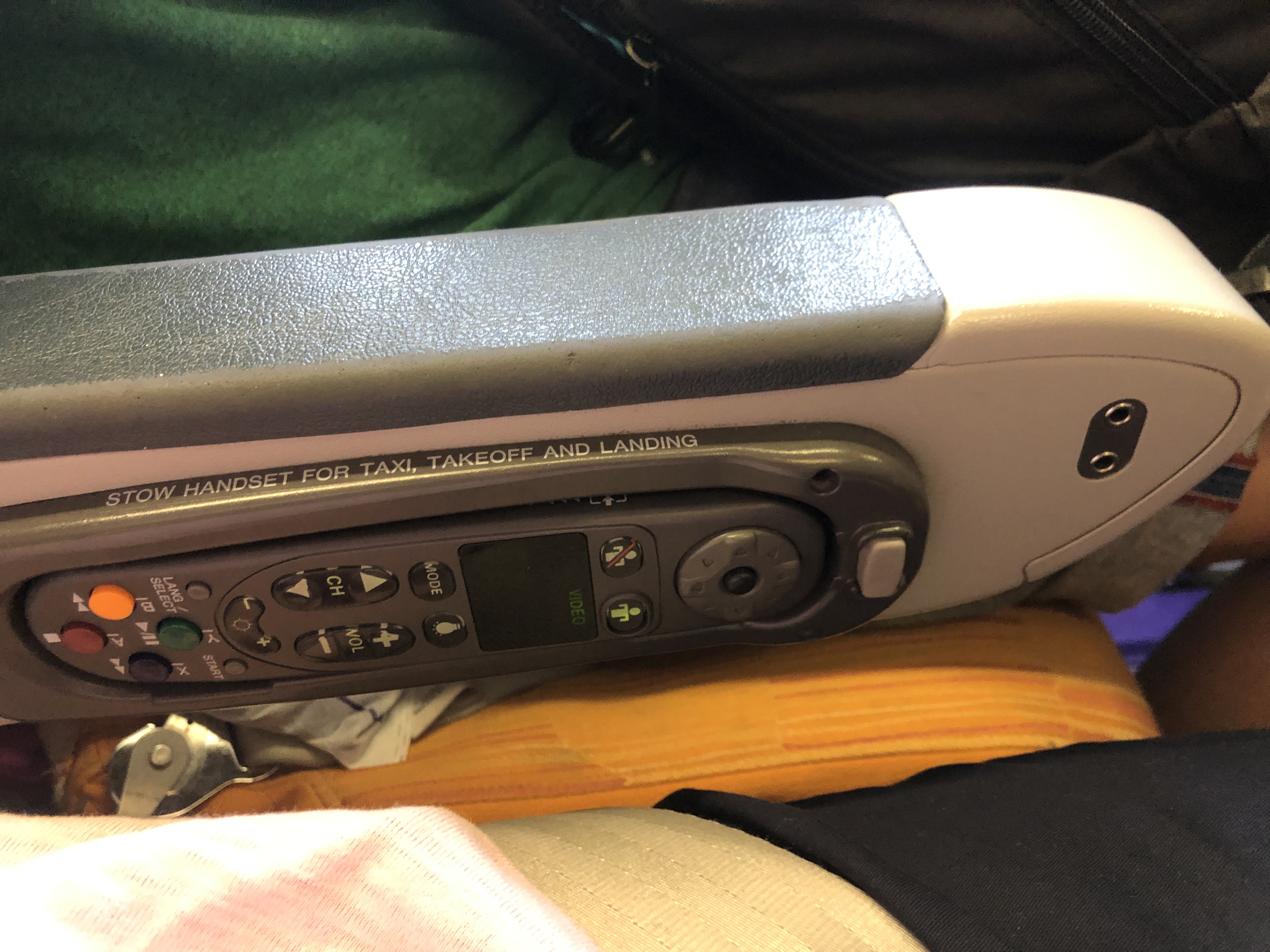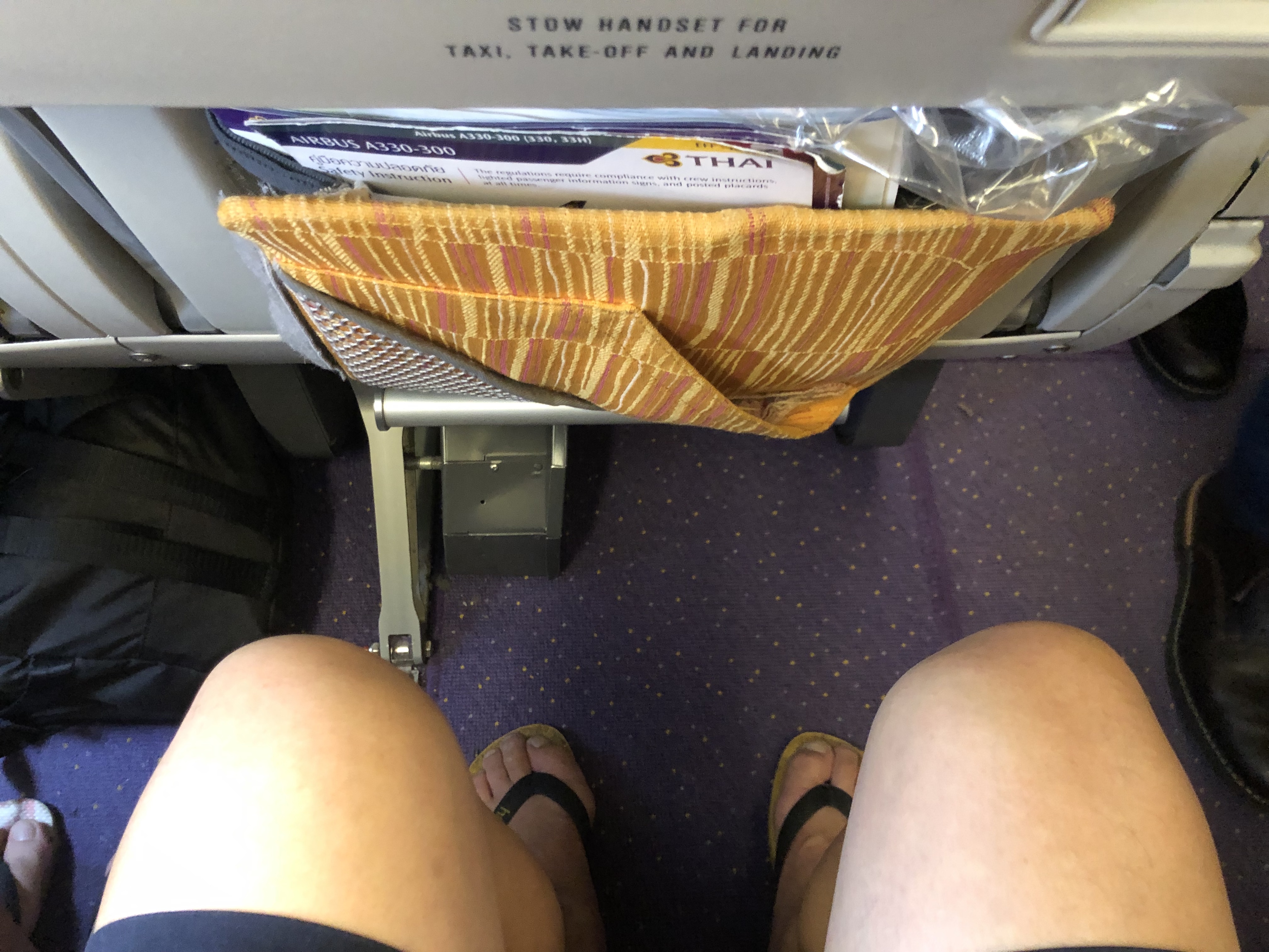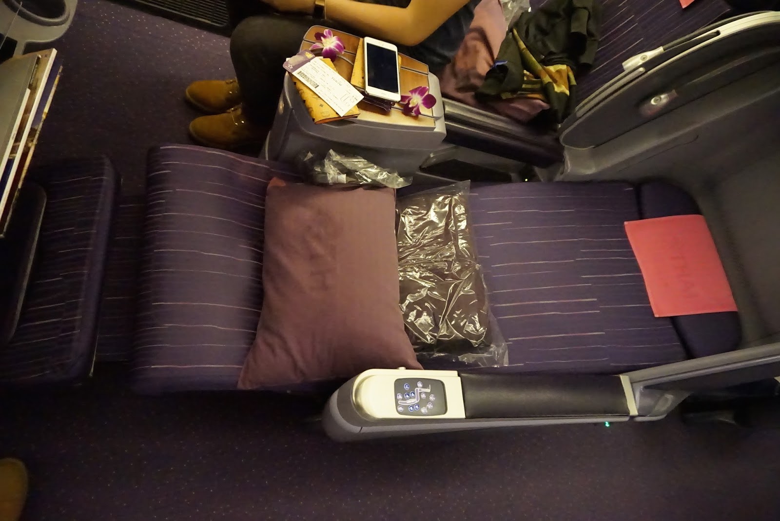 The tray table in the Economy Class cabin onboard Thai Airways A330-300 is rather large. The single fold tray table is able to hold the meal tray with space available to put a can of drink and the cup without cramping the entire tray table. I tend to find the tray tables, especially those that have bi-fold functions, on the newer aircraft to be a little tight on space as compared to the one on board the Thai Airways A330-300. Coat hooks are available in the Economy Class seats, which are located on the side of the seat in front of me. The placement of these hooks is a little odd as I cannot think of a way of hooking coats without disturbing the passenger in front of me. As in the Economy Class cabins onboard all other airlines, the reading light is located on the ceiling above the seat. However, there are no air vents on the ceiling. When boarding, pillows and headphones are placed in the seat, blankets can be requested from the flight attendants who are very happy to bring me one when requested for.