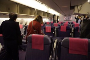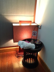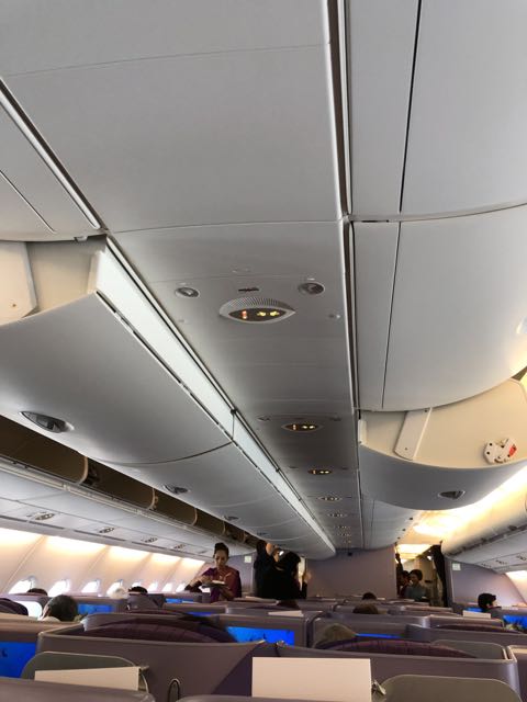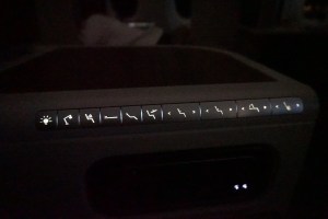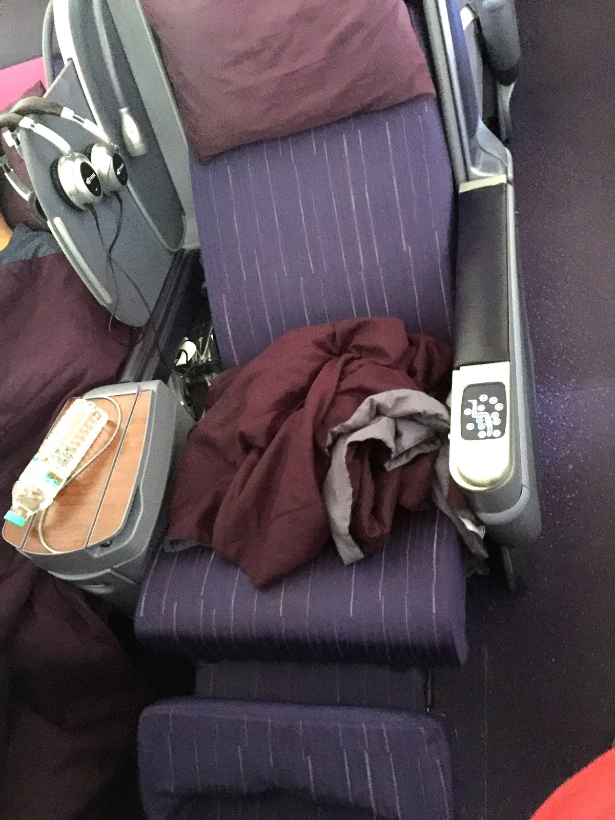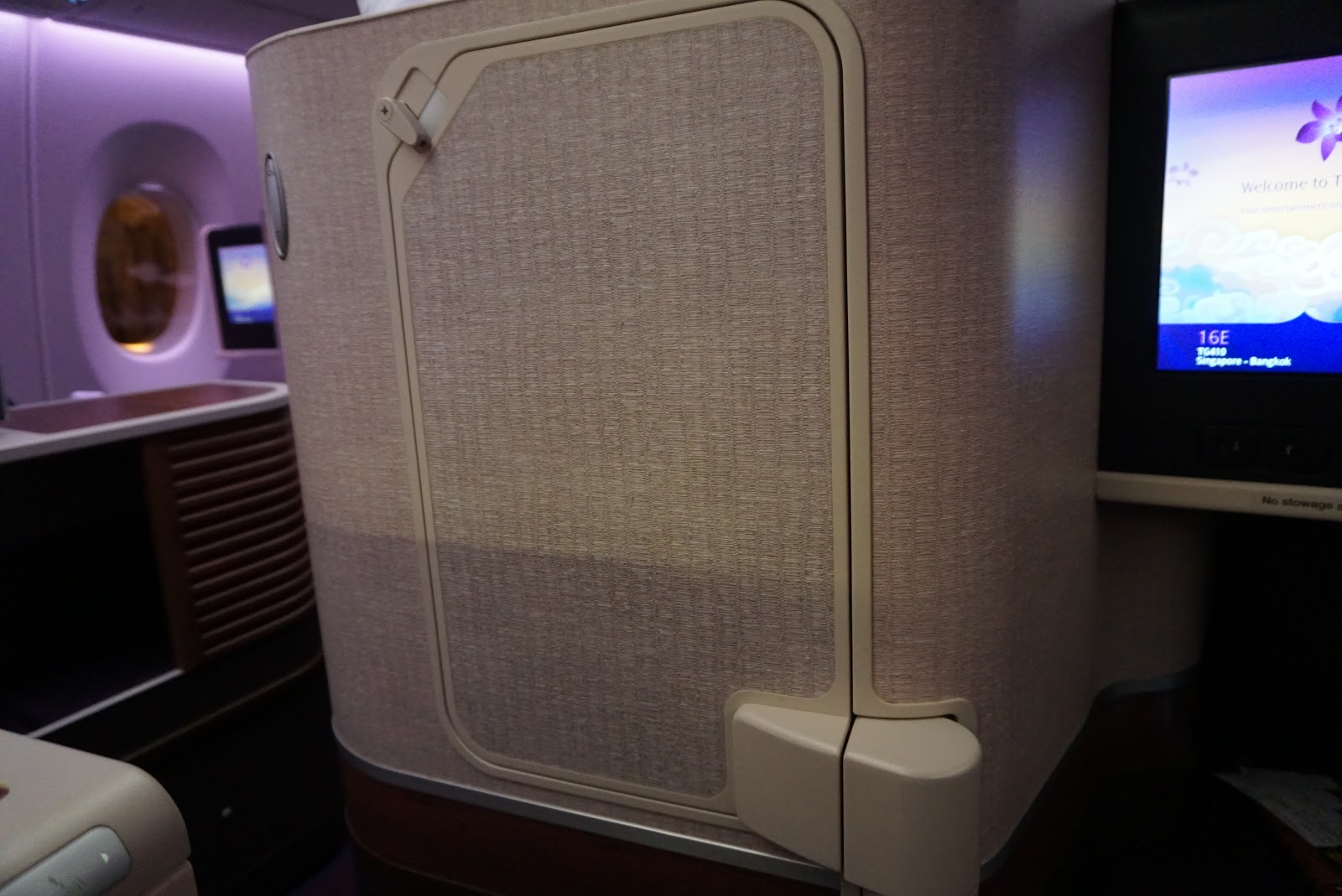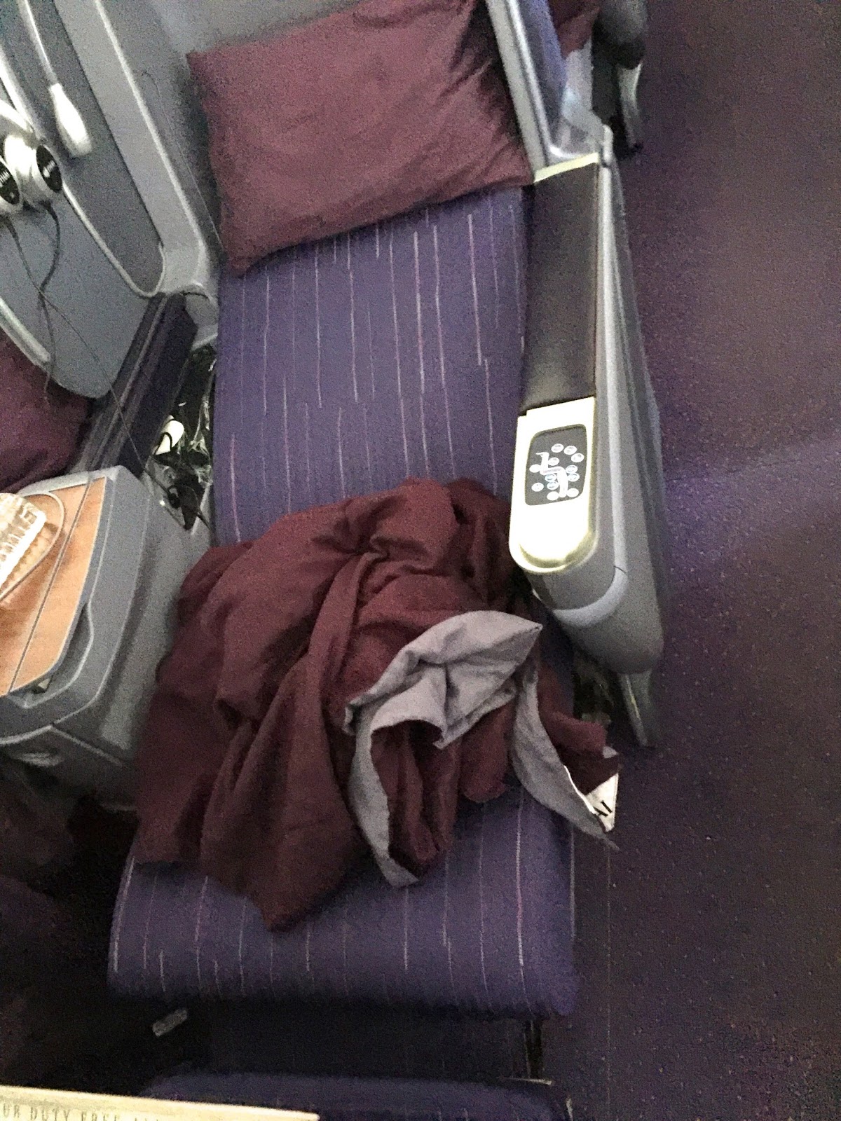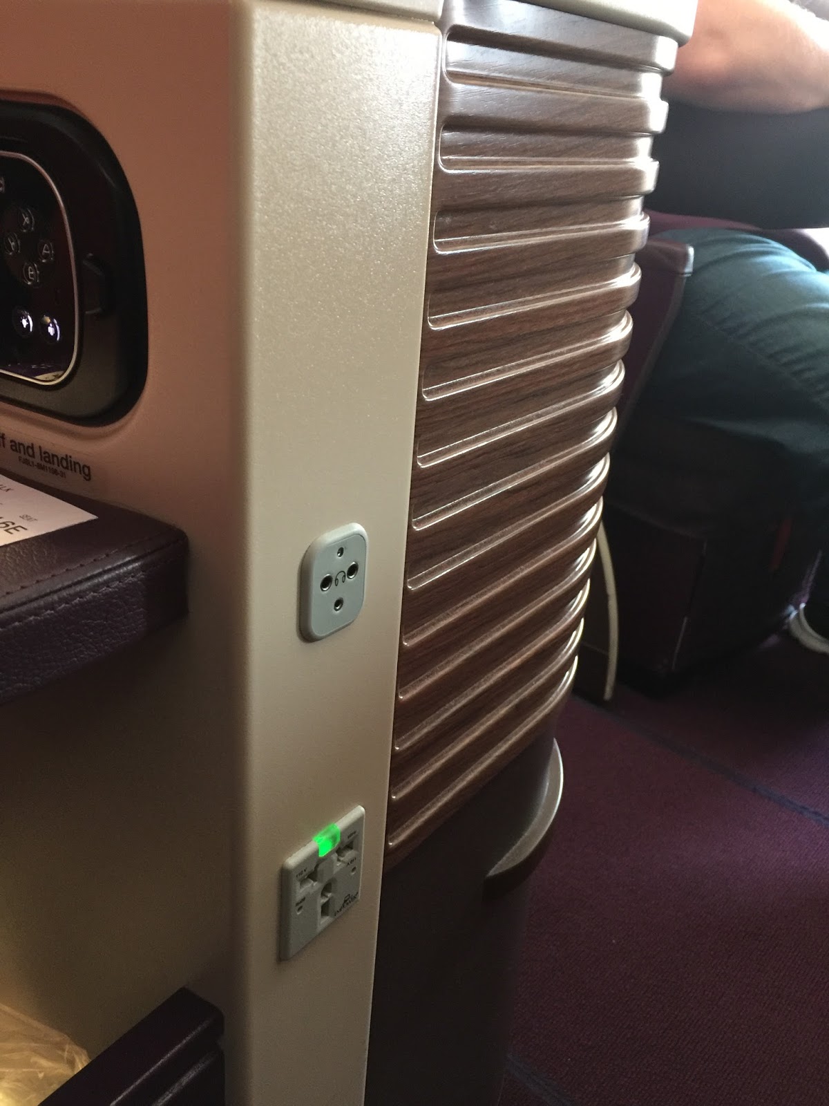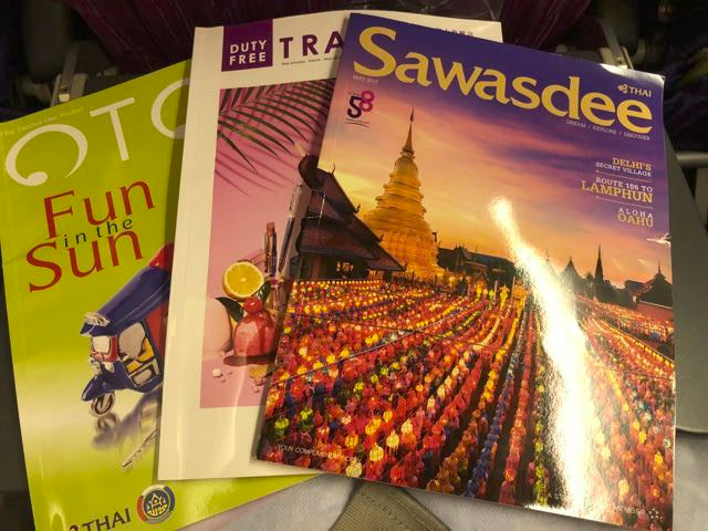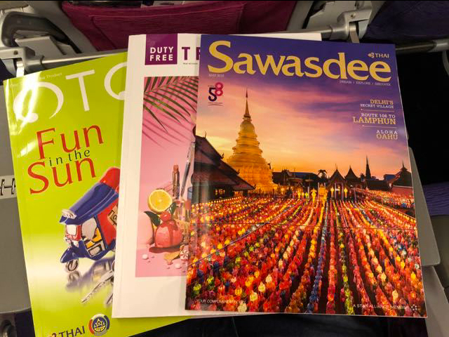 The tray table in the Economy Class cabin onboard Thai Airways A330-300 is rather large. The single fold tray table is able to hold the meal tray with space available to put a can of drink and the cup without cramping the entire tray table. I tend to find the tray tables, especially those that have bi-fold functions, on the newer aircraft to be a little tight on space as compared to the one on board the Thai Airways A330-300. Coat hooks are available in the Economy Class seats, which are located on the side of the seat in front of me. The placement of these hooks is a little odd as I cannot think of a way of hooking coats without disturbing the passenger in front of me. As in the Economy Class cabins onboard all other airlines, the reading light is located on the ceiling above the seat. However, there are no air vents on the ceiling. When boarding, pillows and headphones are placed in the seat, blankets can be requested from the flight attendants who are very happy to bring me one when requested for.