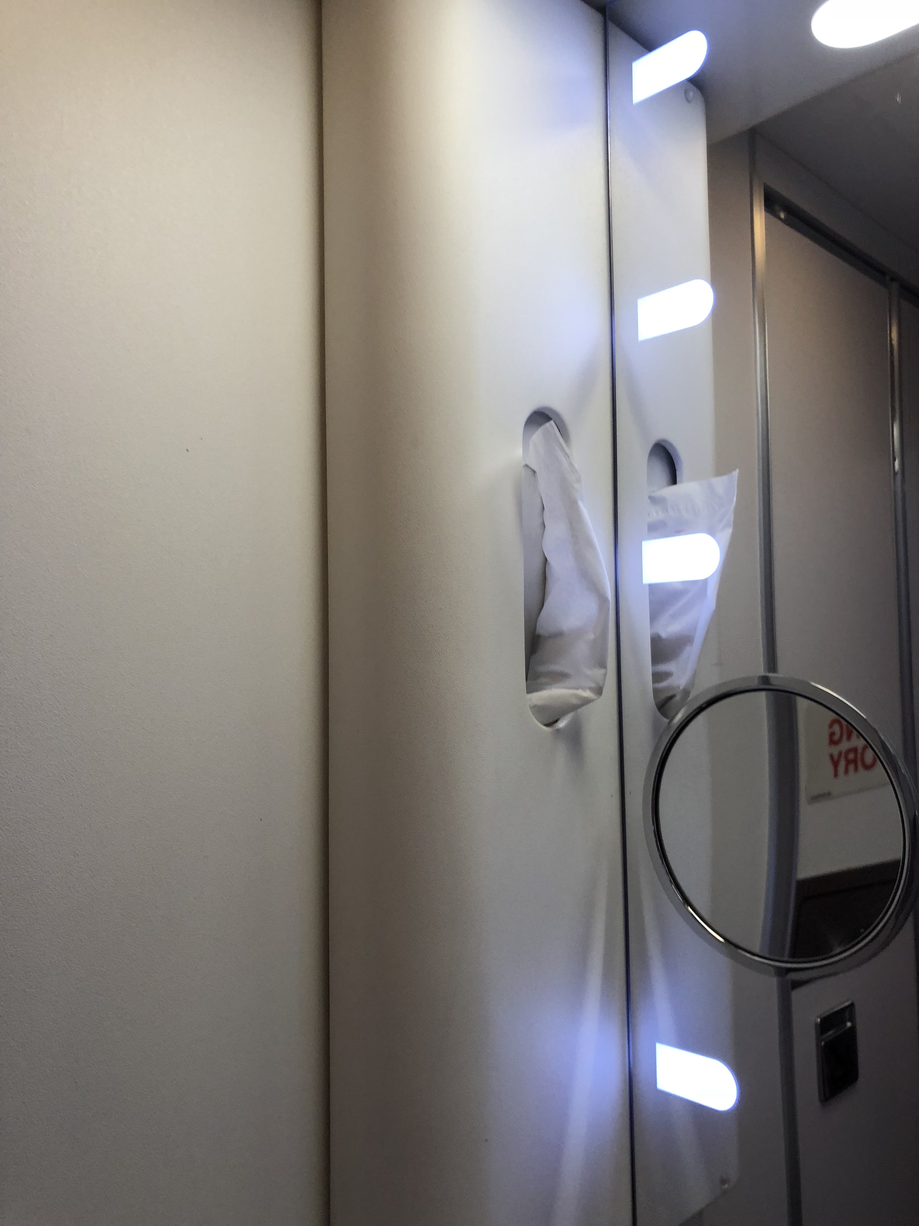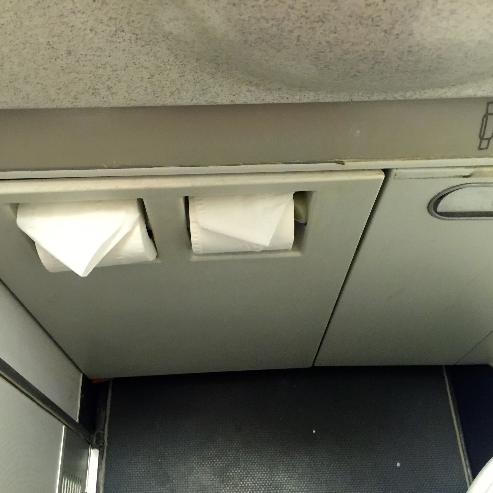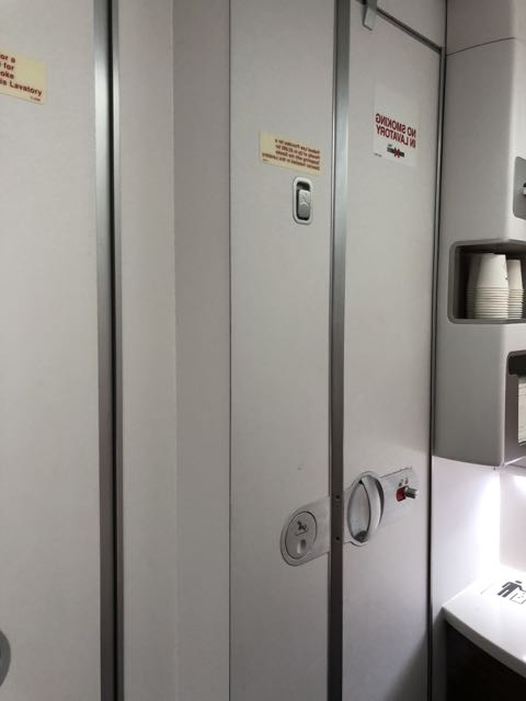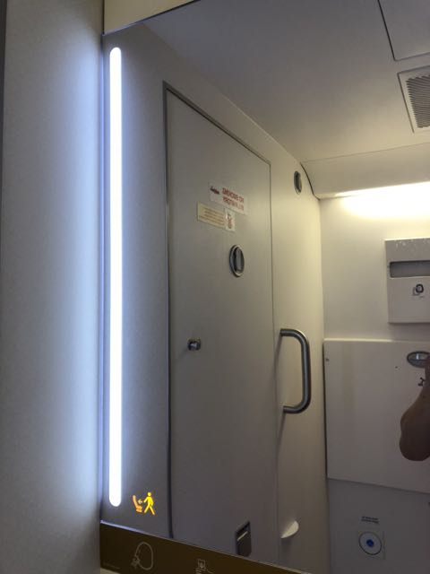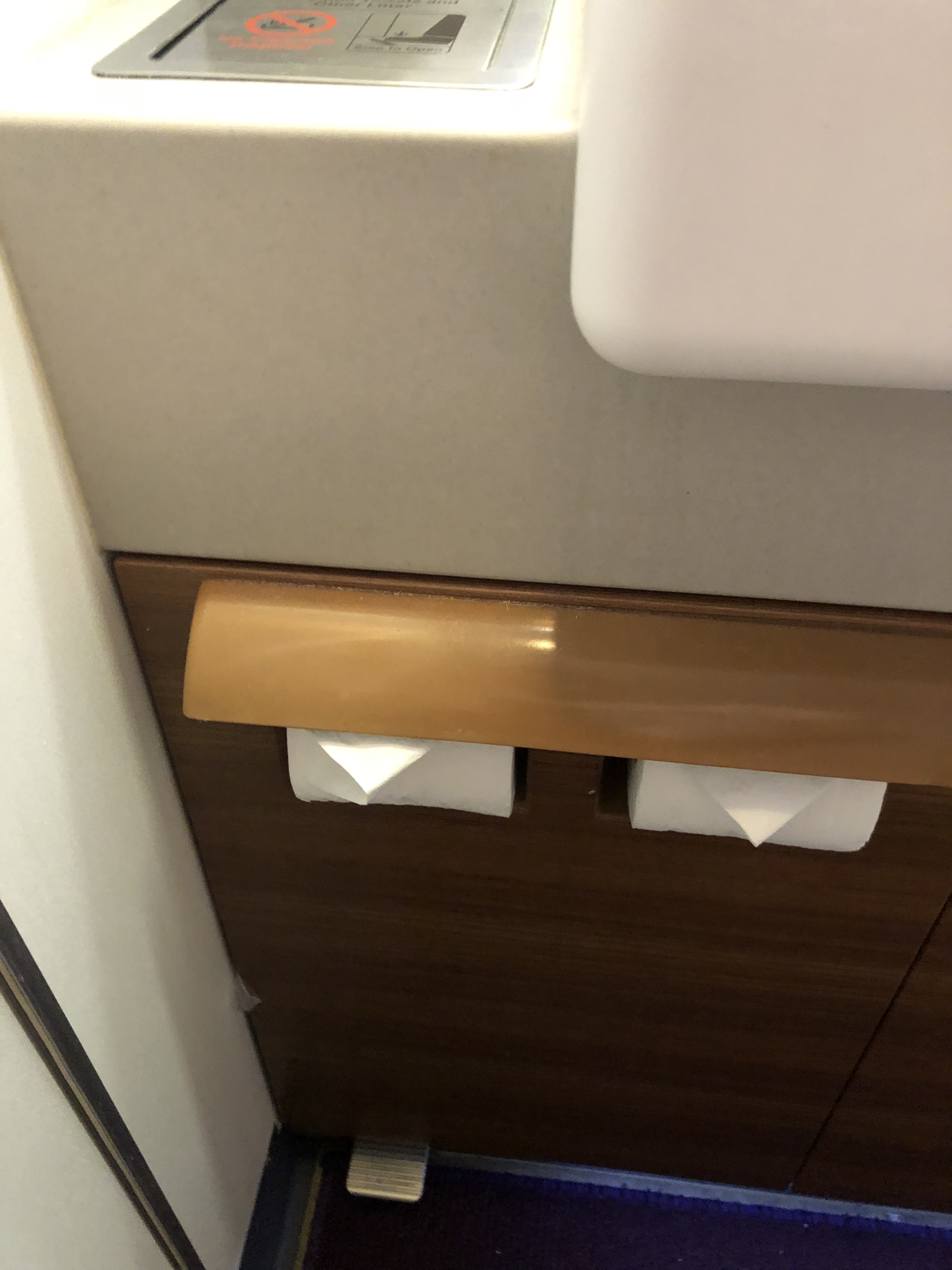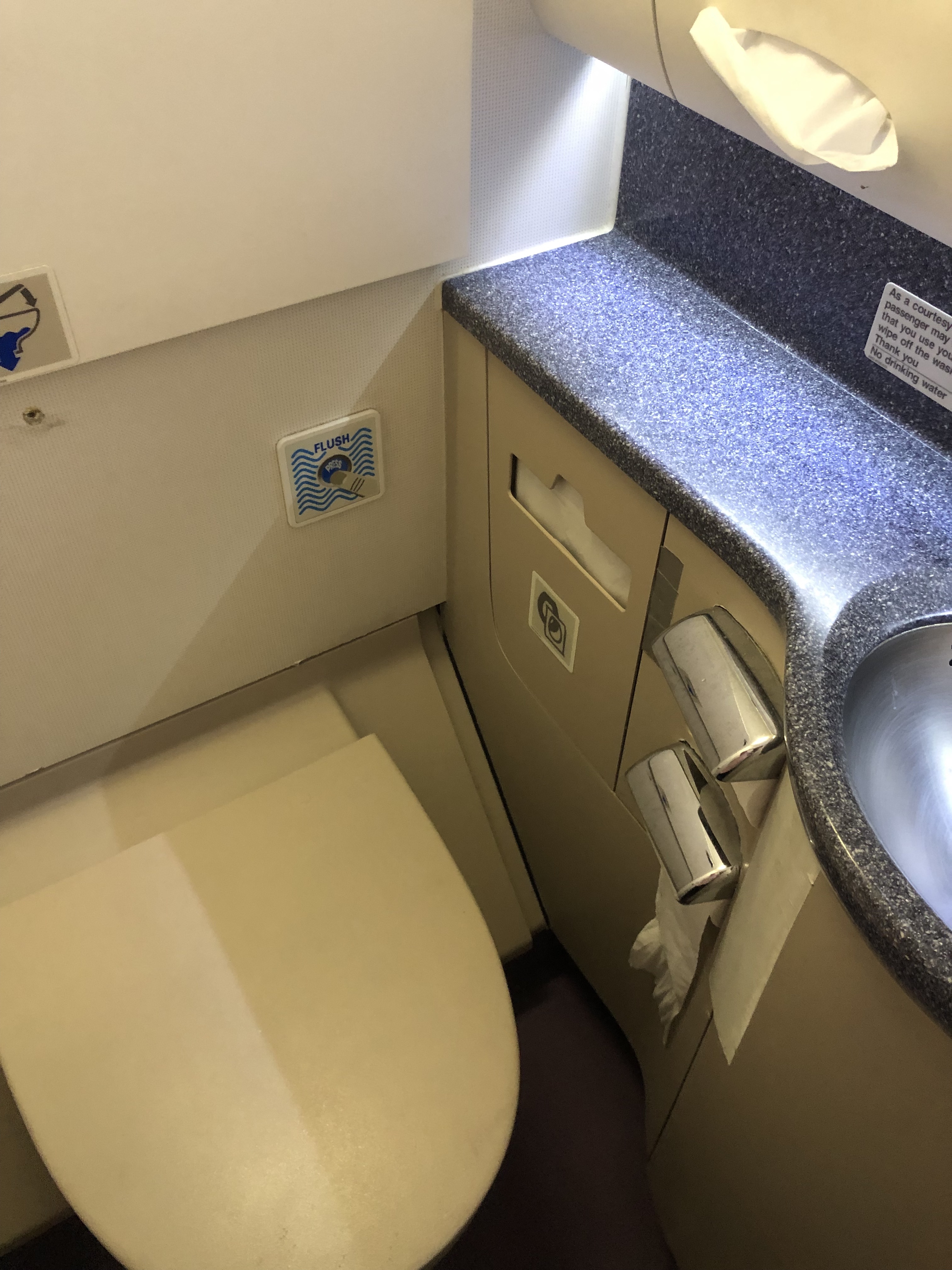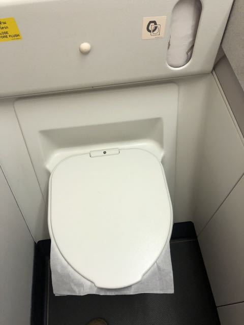 There are a few lavatories scattered across the two sections of Economy Class cabins. The lavatories are rather small and do show signs of the ageing aircraft. Unlike those on board some of the newer Thai Airways aircraft, there are no sensor activated taps on board the A330-300 aircraft. Instead, these taps utilise press buttons for both hot and cold water. Despite the ageing feel to the lavatory, the equipment is functioning well. Hand soap and cologne are the only amenities available in the Economy Class lavatory, which is slightly better than some other airlines which only supplies hand soap. Hand soap is available from the soap dispenser next to the tap.