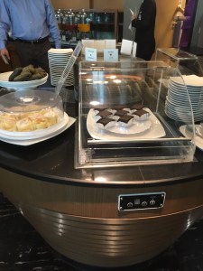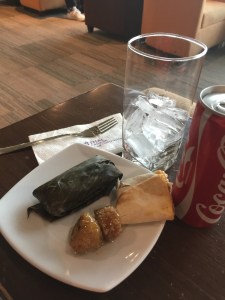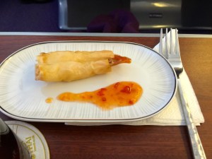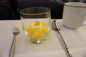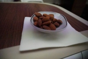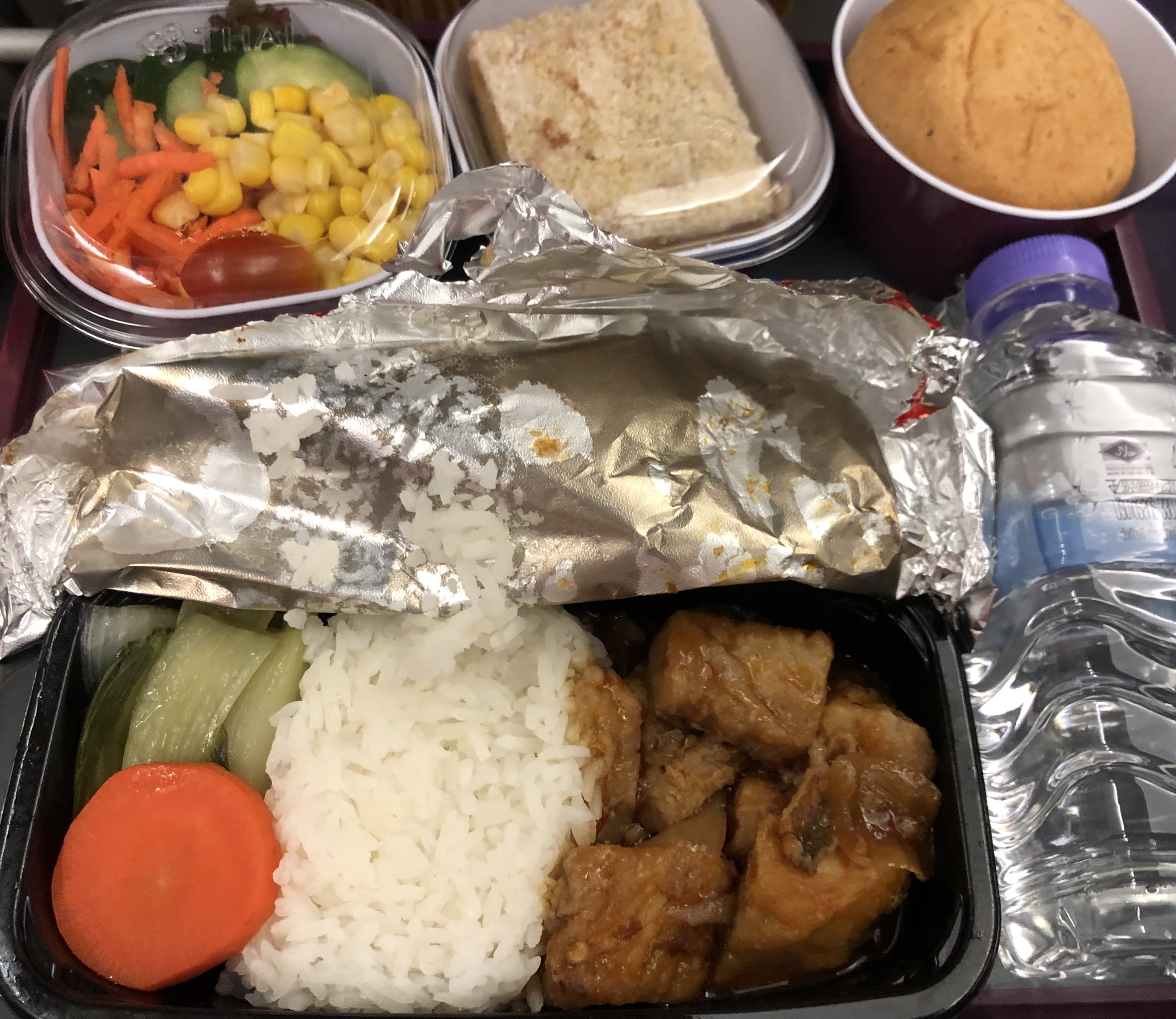 Meal service commenced about 45 mins after taking off. On this flight, we were given the chicken and the fish options. The chicken option is the Fried Rice with pepper chicken. My friend took this option and commented the chicken tasted bland and dry. I took the fish option, which has steamed rice with Fish in Spicy sauce. I thought the fish is a little tough and dry as well, but the flavourful spicy sauce makes up for the dryness in the fish. I only had a mouth of the yam moose cake dessert as I did not fancy the taste of yam. All meals come served with a bottle of water. A little after meal service is completed, the flight attendants went around the cabin serving tea and coffee to complete the meal.
