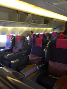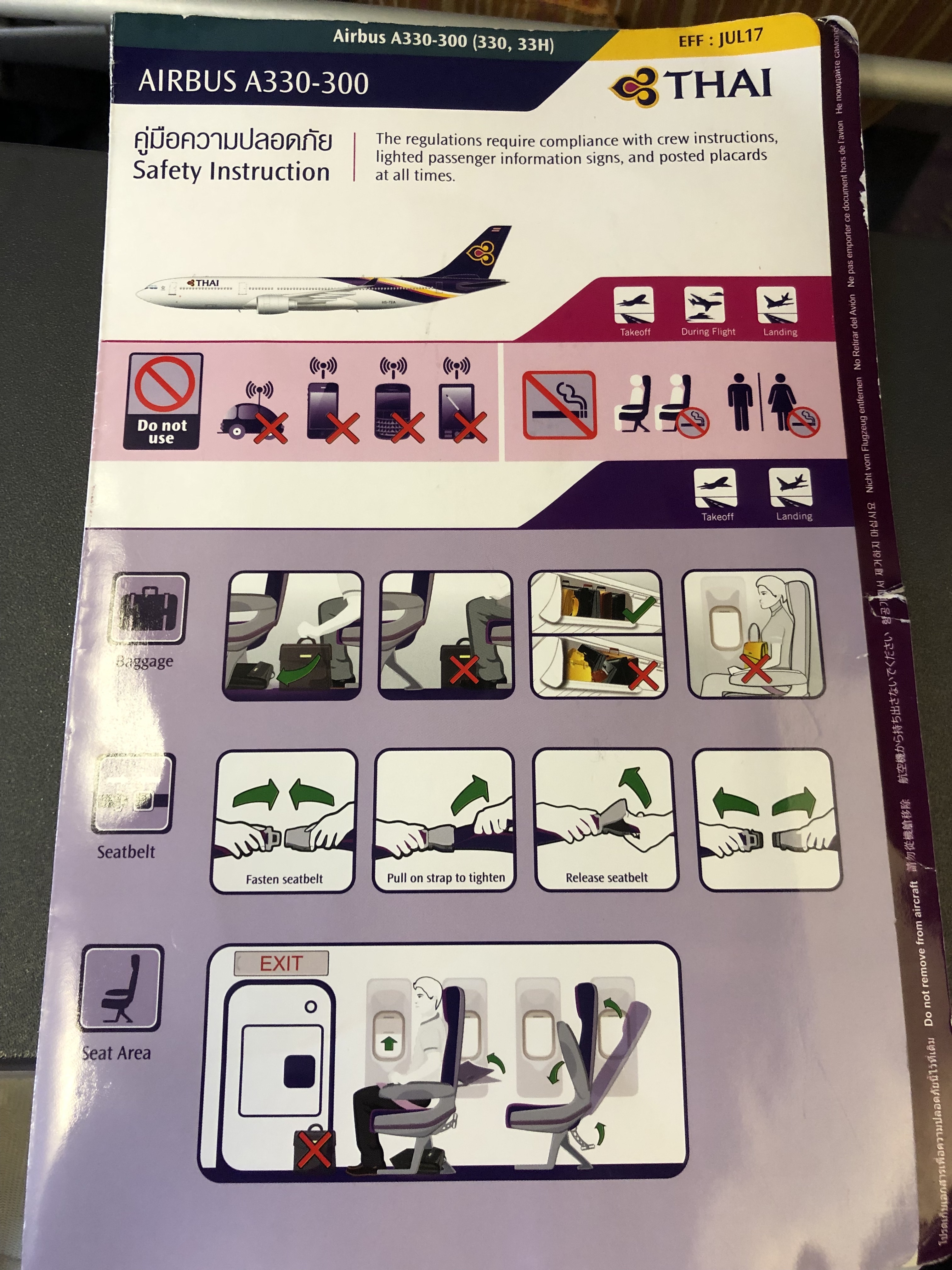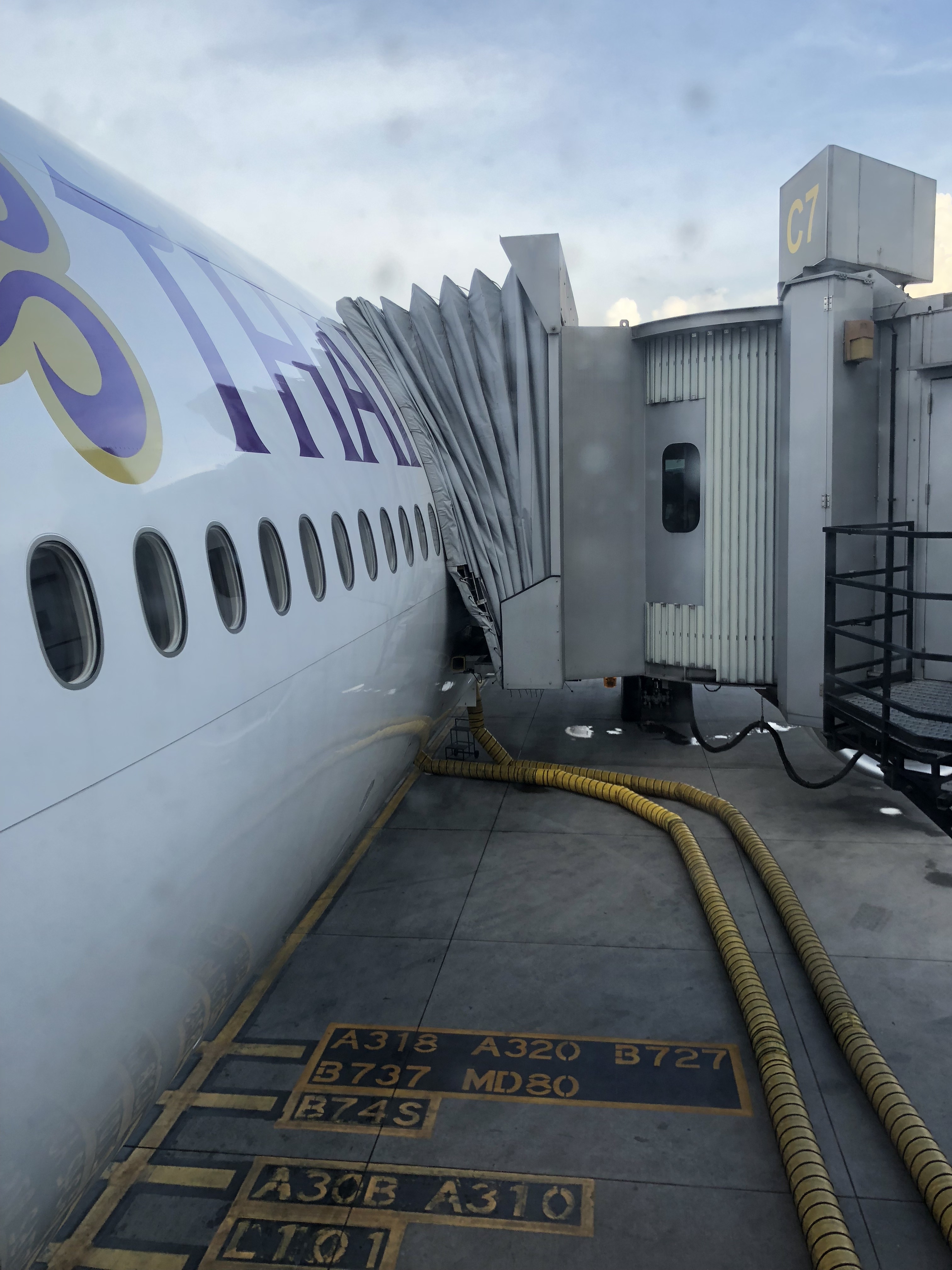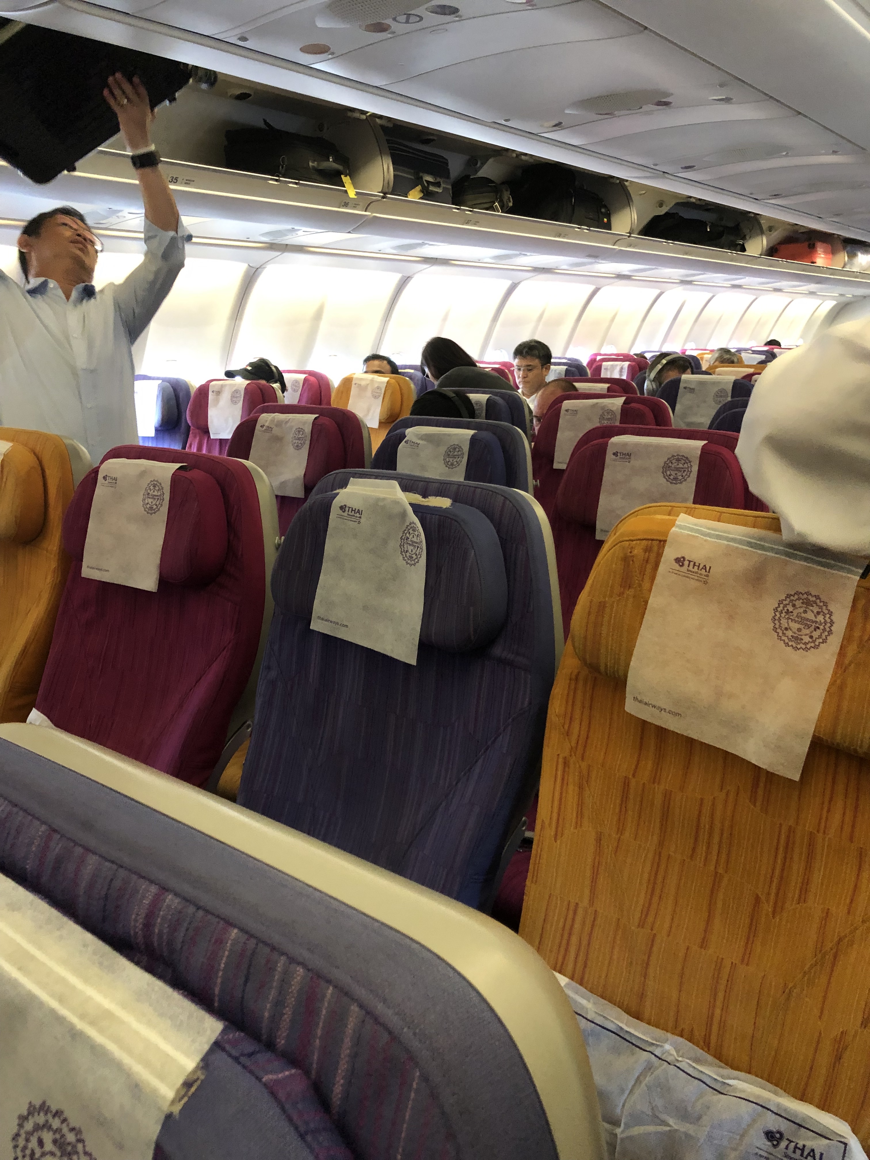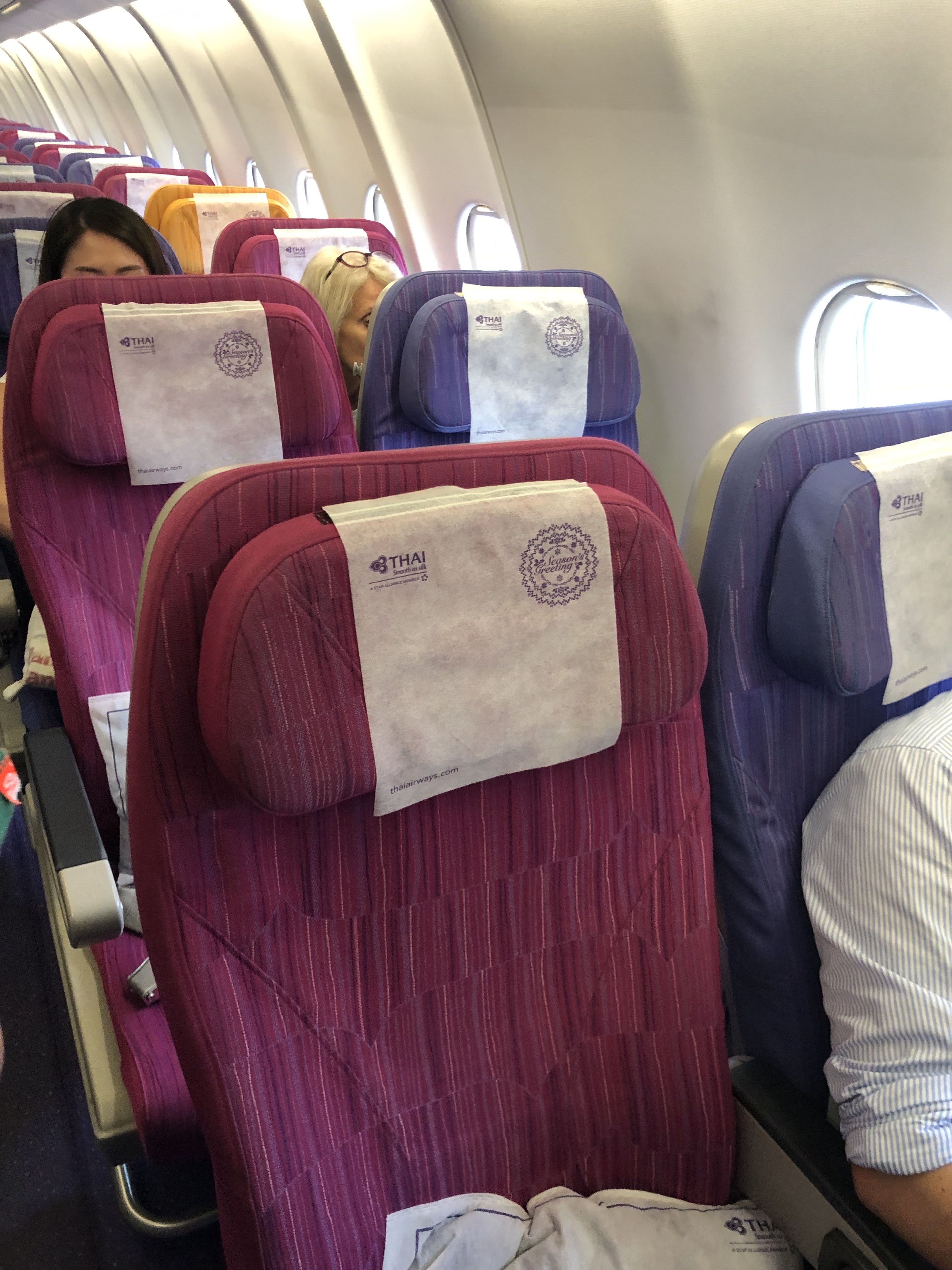 Thai Airways uses A330-300 to service this sector of the flight. The aircraft shows signs of ageing and extended usage.