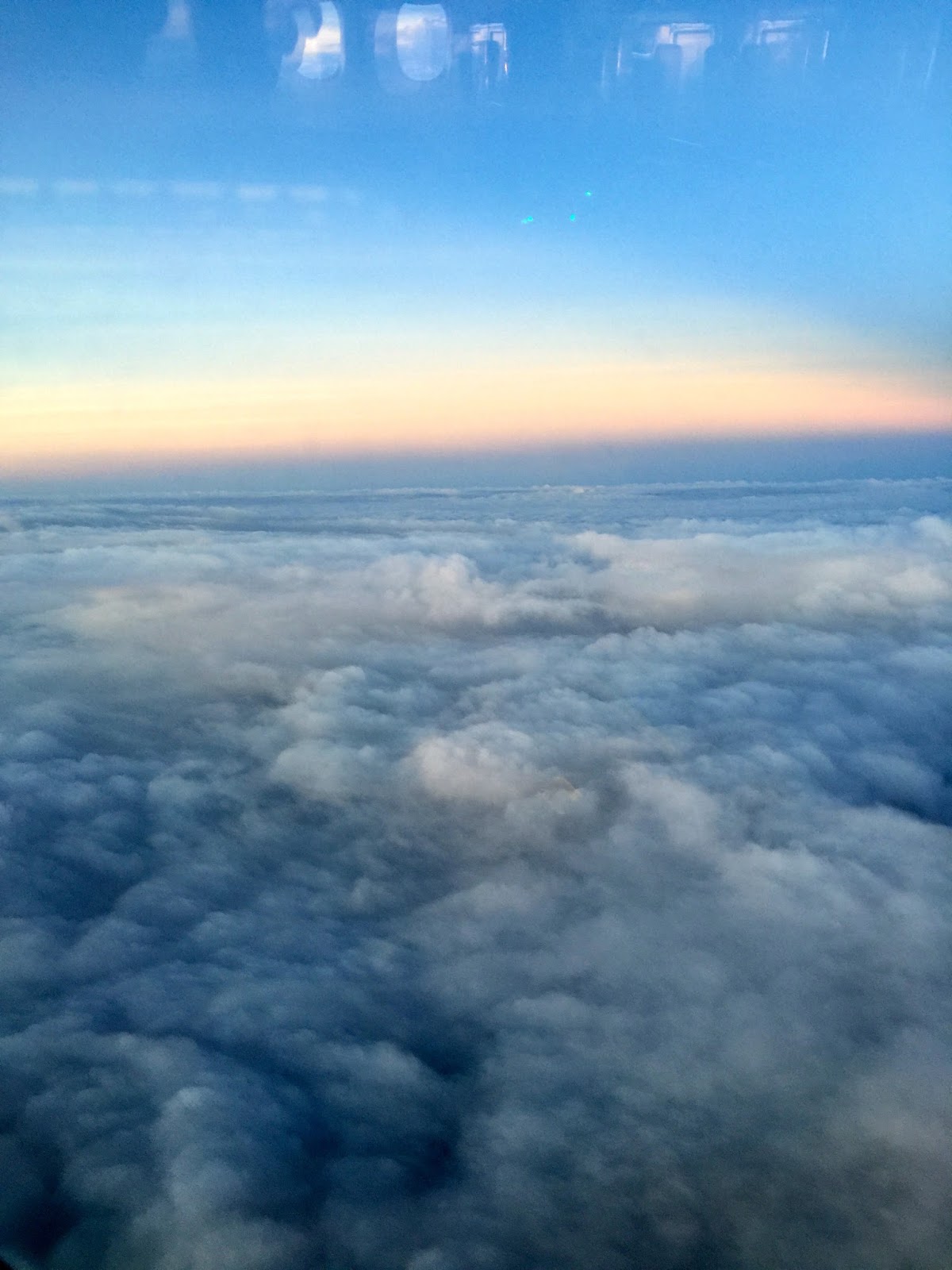 Flying above the clouds during sunset onboard Thai Airways A330-300