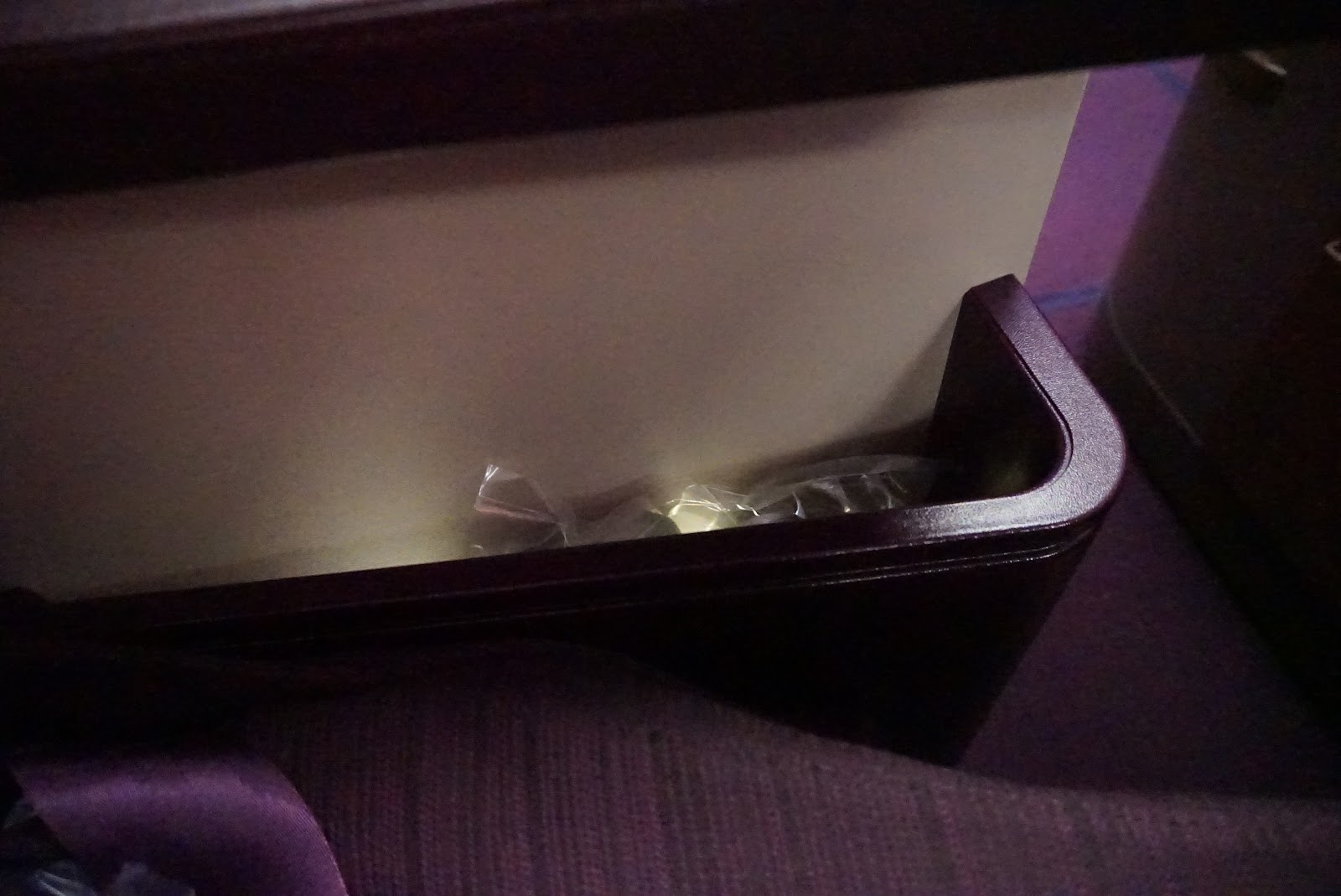 The seat pocket in the Economy Class cabin has three tiers with the biggest pocket used to contain in-flight materials such as the aircraft safety card, in-flight catalogue and magazines. This pocket is large enough to put mobile phones and passports in, however, I would think these small items are meant to be placed in the middle seat pocket. I do find the smallest seat pocket to be a tad redundant as it is not able to contain my mobile phone. The seat pocket also showed signs of ageing as the main seat pocket has one side almost falling apart.