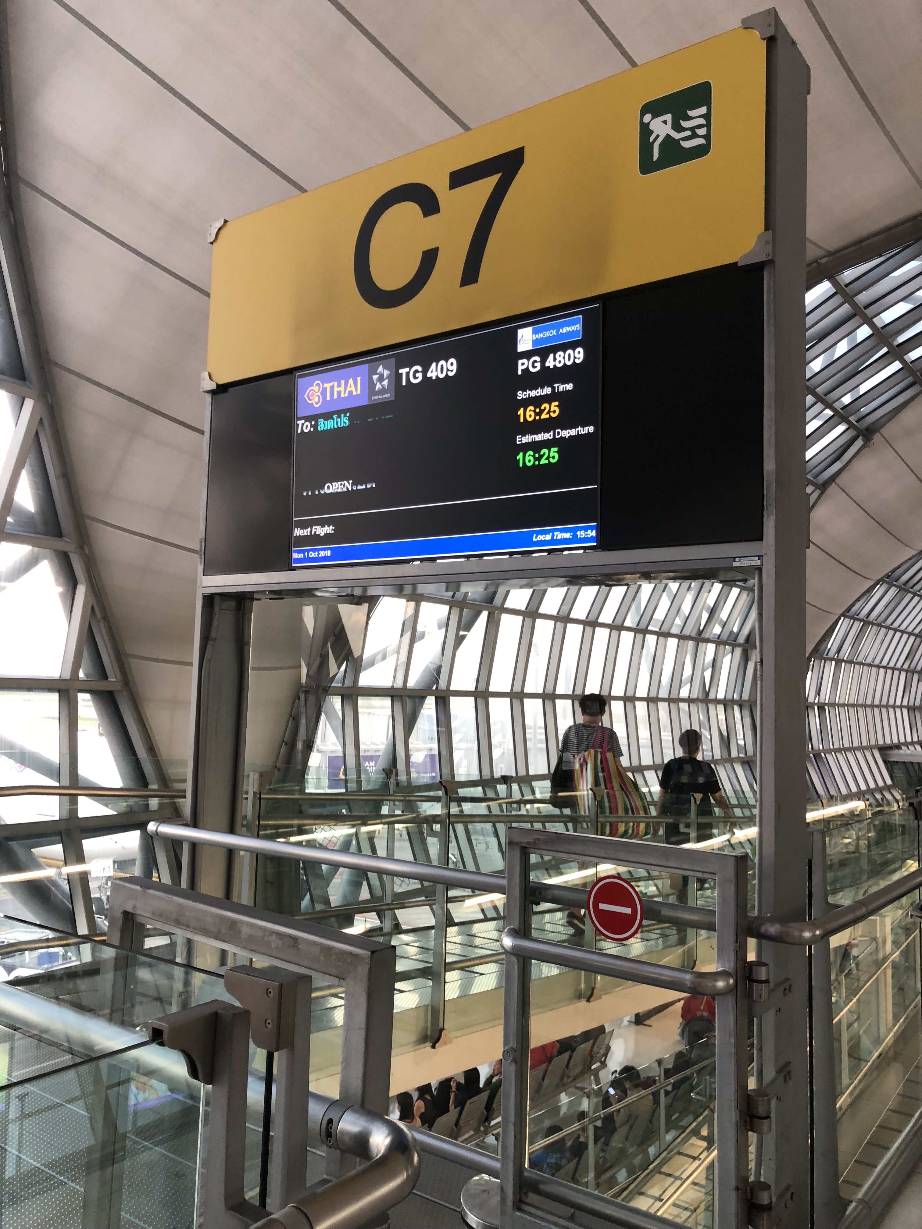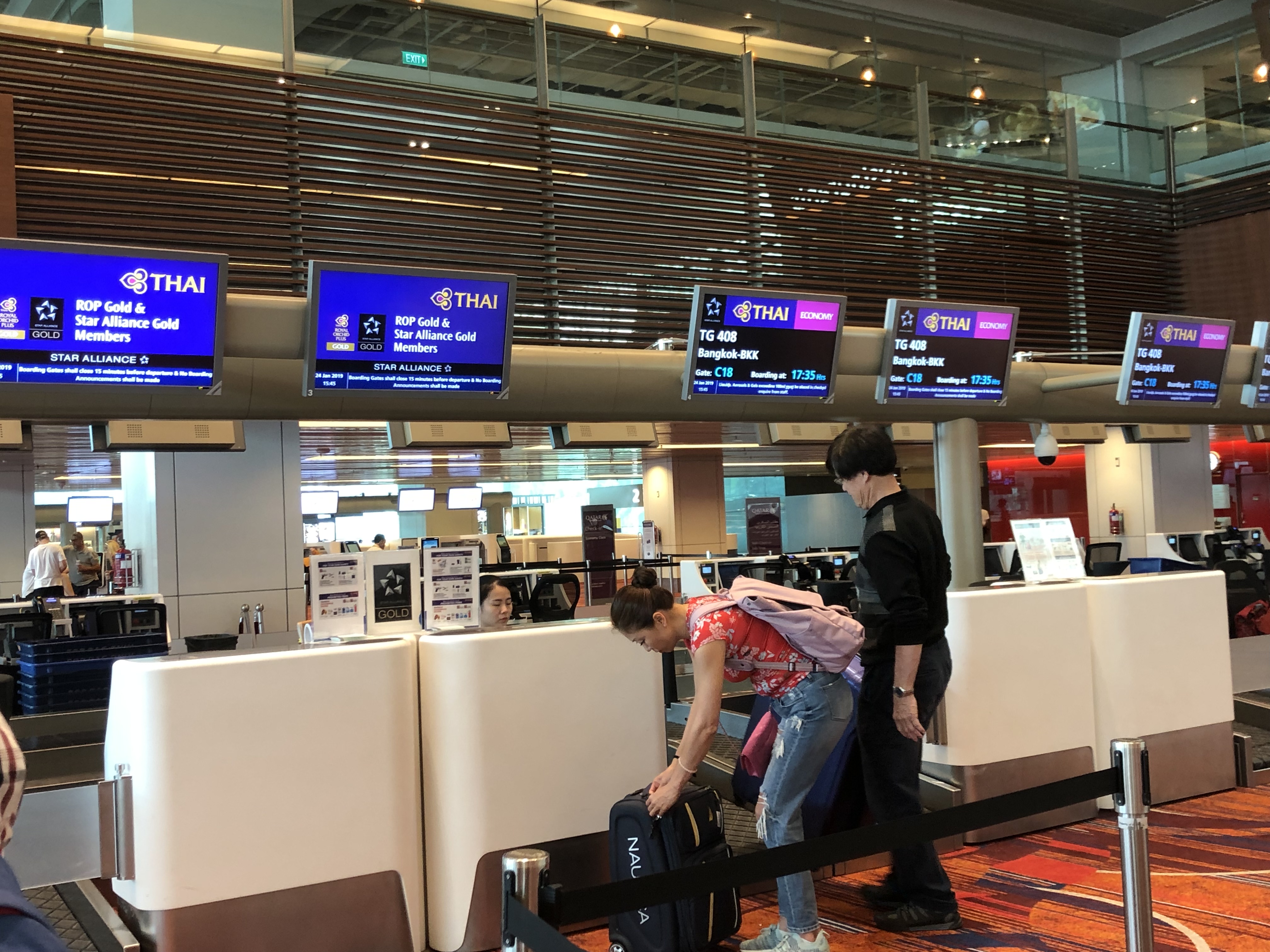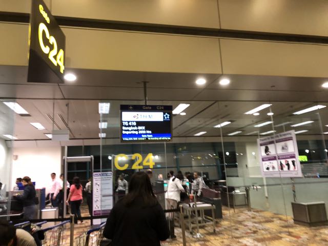 Thai Airways departs from Terminal 1 of Singapore Changi Airport. The check-in counters are located in row 4 of the terminal, mainly serving passengers flying in Economy Class. Business Class passengers are invited to check-in in the SATS Premium Lounge located at the end of row 4. There are mainly two queues for Thai Airways at row 4, one shorter queue for passengers who have completed web check-in and another long queue for Economy Class passengers. As I was early at the time of my checking-in, the queue was not long. However, the counter does not seem to be ready to check-in passengers for the next flight as we waited for quite a while before being called for check-in. The check-in process was swift with the ground staff seems disinterested in engaging passengers other than quickly check us in. She did not even tell us which gate the flight will depart and what the boarding time was. TG408 was originally supposed to depart from C18 but was changed to gate C24 about 1 hour prior to boarding time. The departure gate is a far walk from the immigration counters.