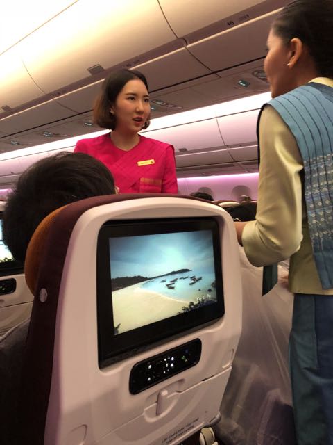 The flight attendants on this flight portrayed the Thai hospitality that is famous worldwide. They are seen smiling and serving the passengers with pride and certainly made us feel welcome on board this flight. The exemplary service starts when we were greeted with warm smiles and the Thai gesture of “wai” as soon as passengers were boarding the aircraft. The smiles extended throughout the aircraft with flight attendants scattering throughout the cabin welcoming passengers. They even helped passengers stow their carry-on luggage in the overhead compartment. During meal time, we were informed that only chicken option is available, however, I highlighted to the attendant that I am unable to consume the chicken meal due to allergies, she immediately helped me sourced the fish option promptly so that I can enjoy the meal. During beverage service, the flight attendants gladly gave me and my friend a can of coke each when requested for it. The flight attendants were seen patrolling the cabin to ensure the safety and comfort of the passengers. They were seen diligently conducting their safety inspections prior to landing. Smiles were seen on the faces of the flight attendants throughout the entire flight.