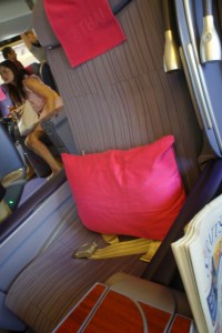 The flight from Singapore to Bangkok is on 777-200. The seat I was assigned to was on the first few rows, window. The cabin looks spacious and clean. The egg-shaped seats gave the whole cabin a futuristic look. The cabin is well-lit and everything looked well maintained. The load on Business Class from Singapore to Bangkok is usually light, mainly due to the short flight time.