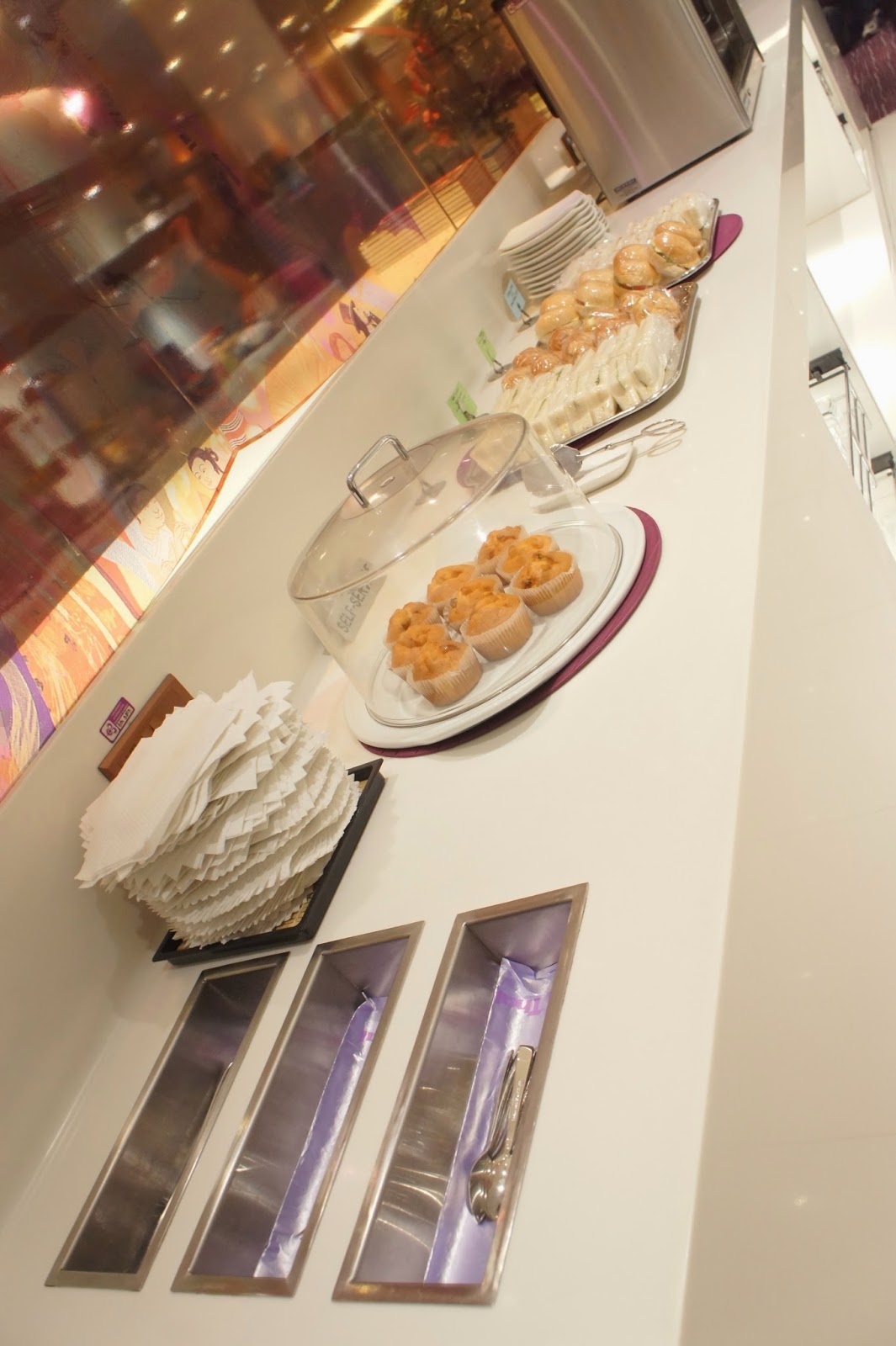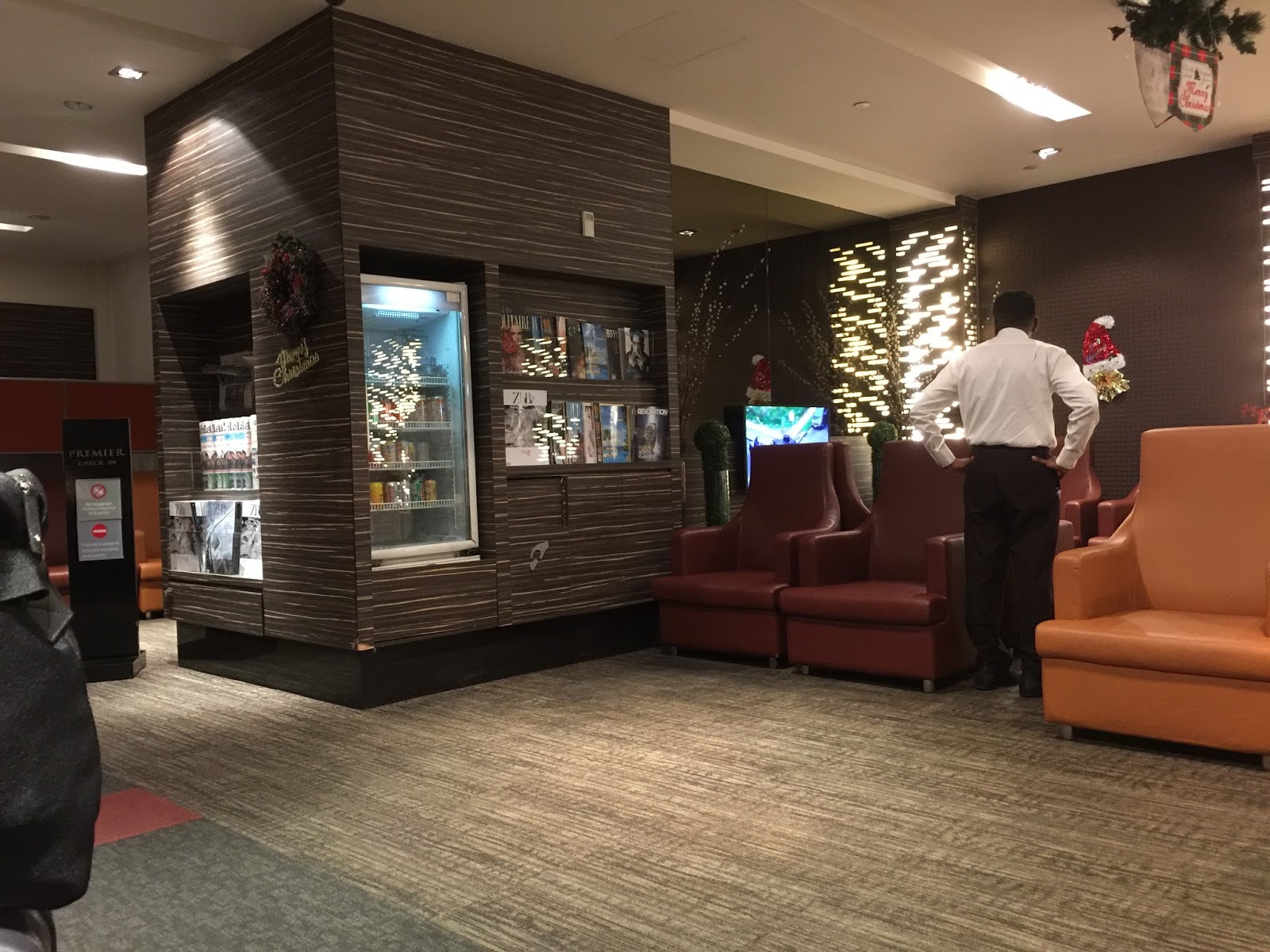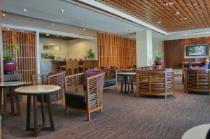 The interior of the lounge was dim in colour, the central theme colour was brown to give it a sense of class and cosiness. However, the lounge felt a little underwhelmed, as it is rather small facilities are limited. There are very limited options for food and drinks. The main bulk of the area of the lounge is dedicated to seating patrons, while the food counter occupies a small portion of the lounge. There is also a very small corner where one can find business facilities such as computers and internet access. There are also some reading materials, with a collection of major business and travel magazines and newspapers.