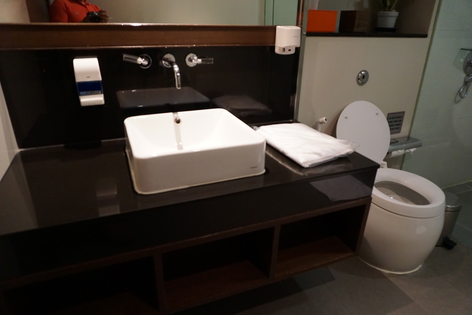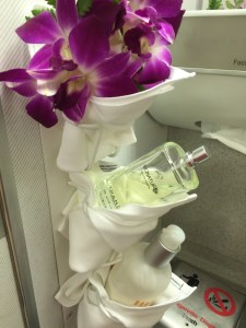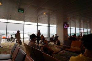 The lounge at Concourse D is elongated in shape and as with the previous lounge, I was warmly greeted and welcomed to the lounge. I was told that there aren’t any calls for flights by the staff and was reminded to take note of the time of my onward flight. This lounge has a warmer and earthier feel as compared to the previous lounge. As it is located further away from windows, the lounge appeared dimmer and cosier. After finding a quiet corner, I checked out the food that was on offer by the lounge. They offered small bite-sized snacks such as Chinese dim sum and fried spring rolls and samosas. There are also sandwiches out for passengers to grab. The concept of food offering is more to provide snacks and not a filling meal that passengers will not be able to eat more on board. There are also an assortment of drinks from fruit juice to soft drinks and coffee and tea to liquor at this lounge. As with the previous lounge, there are also TVs broadcasting international news channels and an assortment of reading materials from local and major international newspapers to magazines. The food offered tasted alright, and not exactly fantastic. However, it does the job of keeping on filled up temporarily while waiting for full meal service onboard. The toilet was large and showering facilities were also made available.