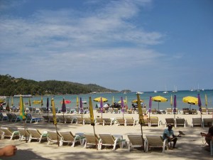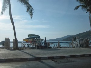 This very small island is a place purely for the tourists, we were told to rent a beach chair and relax by the beach. Snorkelling was an option that we can take (which I did), or we can choose to sleep by the beach. I went snorkelling (not far from the beach), well the view was boring. The fishes are not that many compared to Pi Ley Bay, not as colourful and almost all the corals are dead. I saw some fishes feeding off the algae on the (half-dead) corals. Oh yeah, there are lots and lots of sea urchins, other than that there is nothing fantastic in snorkelling here. What boring sights!!! After snorkelling for about 15 mins (really din take long for me to realize it is boring here), I headed back to the beach to relax, enjoy the sea breeze and had an ice-cream. I derived at a conclusion that this island was made purely to make money off the tourists. As I was relaxing, I heard someone singing and crowds were cheering the singer. I was drawn to see what’s going on and who was singing. Well, it was a ladyboy singing, “she” had a female voice and was good at singing. “Her” voice had stirred up much cheer and the mood of the tourists at the area. Everyone was cheering “her” on and asked for encore whenever “she” finished a song, of course, she obliged and continued to entertain us with “her” performance. I guess “she” must have been singing for a while, eventually “she” gave into “her” tiredness. Someone else took over the mike and so the crowd laterally dispersed. This is the time I went back to my chair and continued relaxing…… soon after our time is up, it is time for us to head back to Phuket island. The ride took only 20 mins and we soon find ourselves on the van heading back to our respective hotels.
