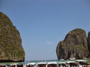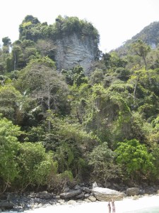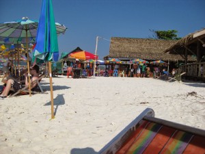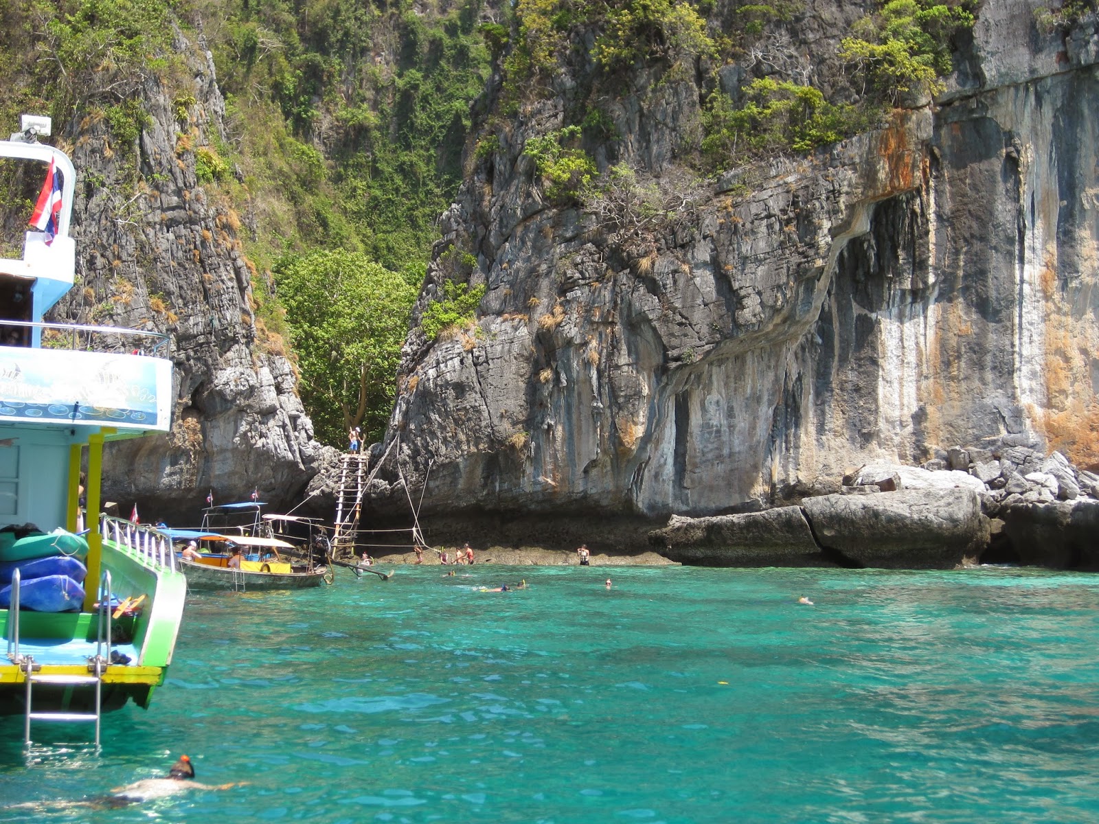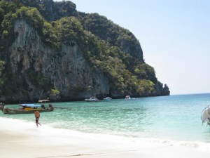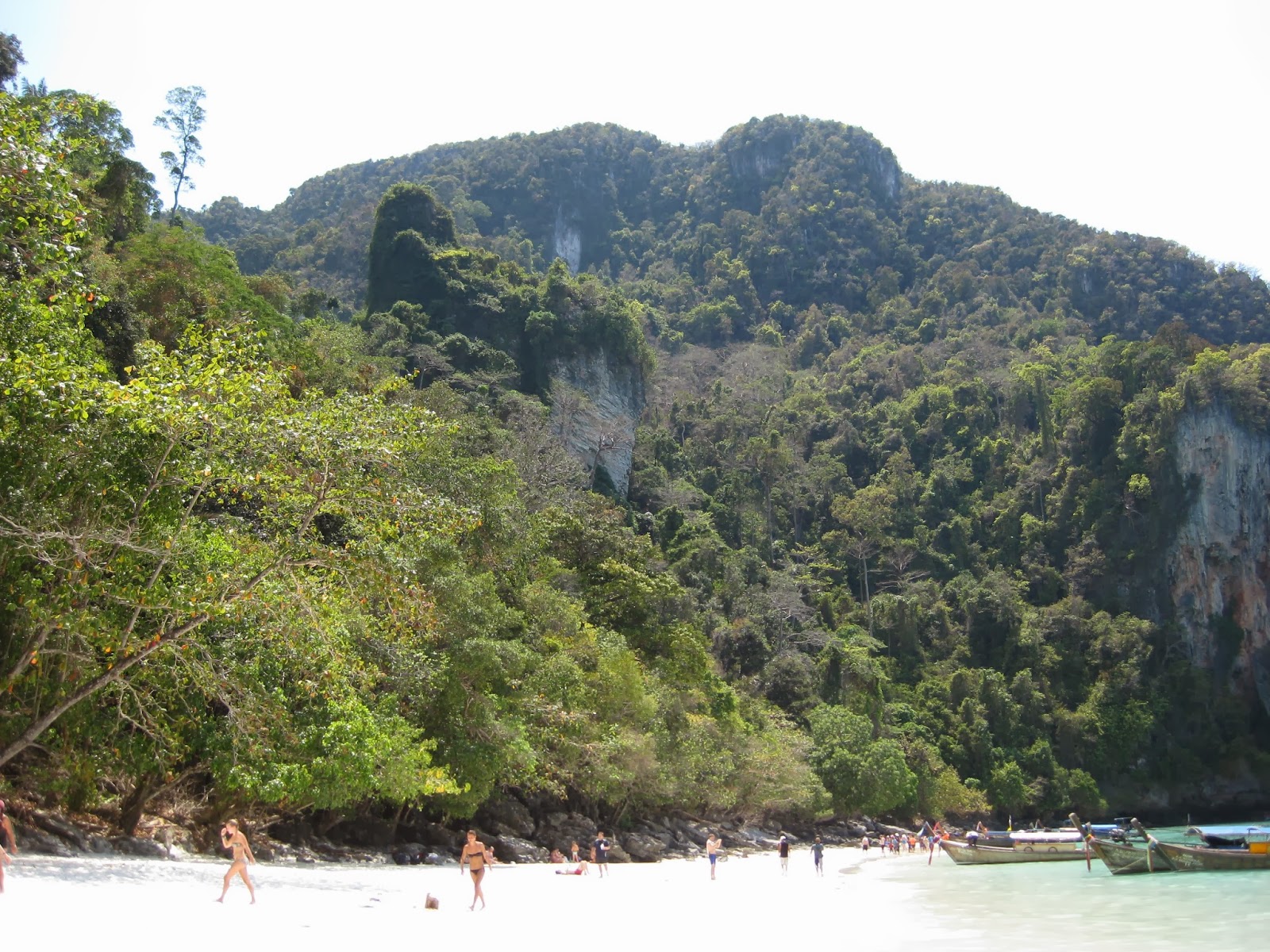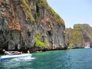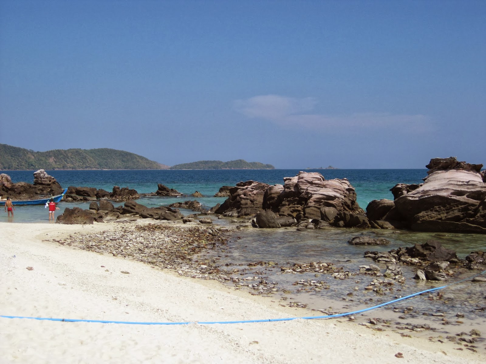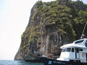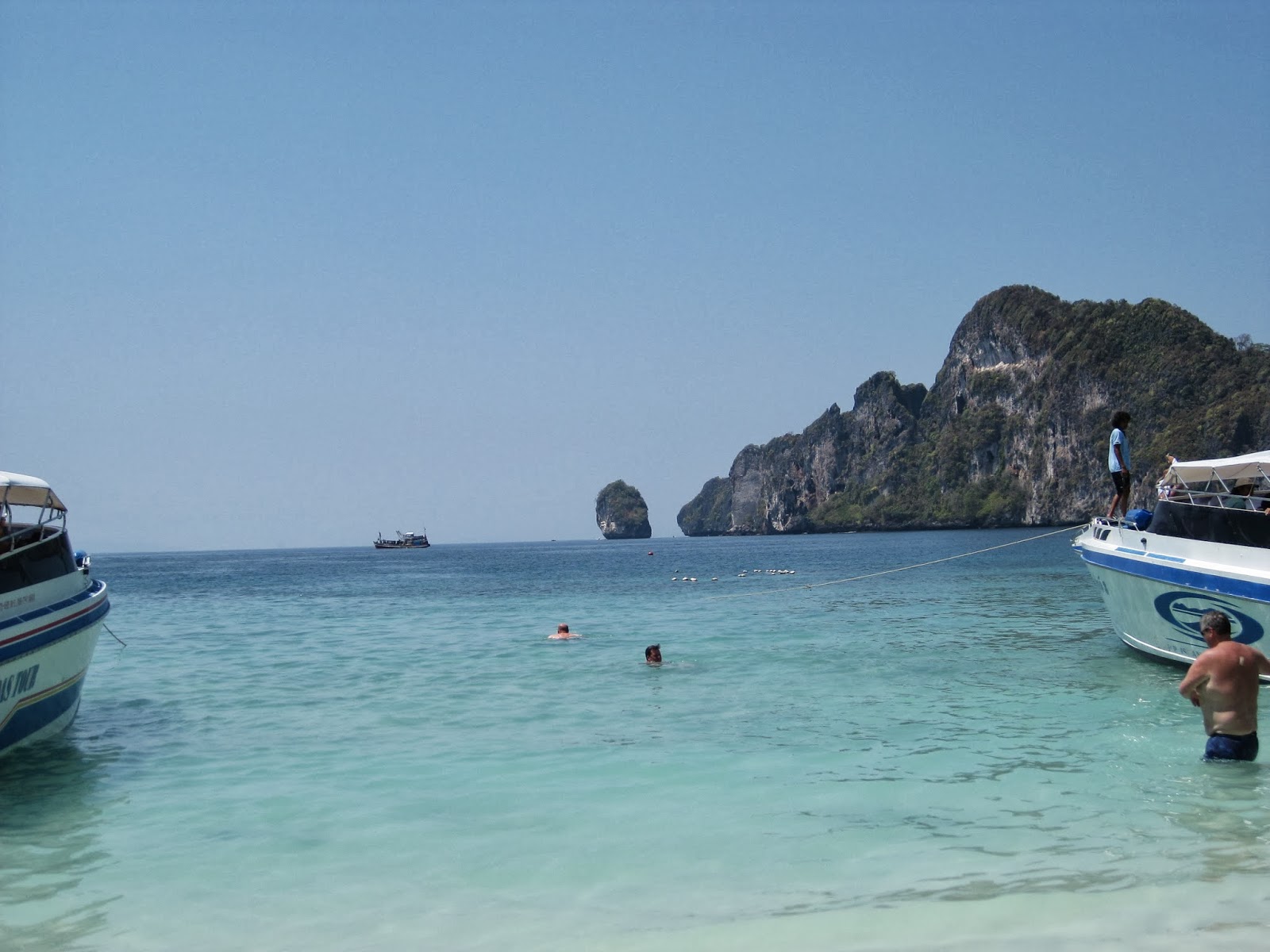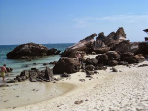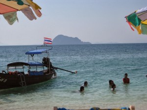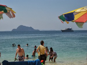 It did not take the crew long for them to prepare the boat and get underway. Soon we found ourselves at the monkey beach (the ride took only about 5 mins). After the coxswain beached the boat, we were on the beach! Well really wonder why they called this place Monkey beach in the first place. The only “monkeys” insight was humans! Perhaps the tourists had scared the monkeys back into their forest habitat. Some of the stuff that tourism brings….signz……. no monkeys, but the beach was enjoyable. Nice view of the bay, cool water, and not much crowd (maybe is the time we were there, most of the tour group would probably have left!). After spending some 30 mins there, we headed for Khai island.