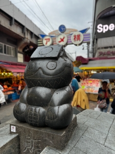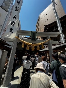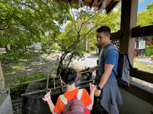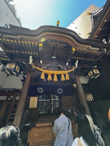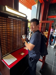 Before our trip to Japan, I saw a clip on social media about this unassuming temple in Tokyo that was believed to bring luck and ward off evil. Koami Shrine is located in the Ningyocho district, near the Asakusa area. We took the Tokyo Subway from Mita Station and alighted at Ningyocho Station. The shrine is a 3-minute walk from Ningyocho Station Exit A6. Koami Shrine is a small shrine tucked in a residential neighbourhood, sandwiched between two buildings. The wooden structured shrine follows a typical Japanese shrine architecture, coated mainly in the natural colour of the wood used to construct the shrine. We spotted some gold platings on the under roof of the shrine; despite the small number of golden platings, the plainness of the shrine made the golden parts stand out. There are very few carvings on the shrine structure, with only a phoenix at the topmost beam and some dragons. The main deity enshrined in Koami Shrine is the god of wealth and asset protection. Hence, the locals flocked to this shrine for good luck. One of the interesting rituals here is the washing of money, which is believed to bring wealth and fortune. After offering our prayers, we participated in the money-washing ritual in the well beside the shrine. It was an interesting experience, and hopefully, it would bring us luck.