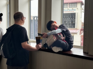A short walk from Hozomon Gate, we arrived at the main hall of Sensoji Temple. The main hall has an unusually high roof and uses the same architectural style as most Japanese temples. The main hall is decked mainly in white with red-coloured pillars. Despite being packed with visitors, the large outer sanctum of the main hall in Sensoji Temple did not feel crowded. We were able to peek into the temple’s inner sanctum from the large mash in front of the inner sanctum. A large golden altar dominated the views of visitors. As the Bodhisattva is a national treasure, it is housed deep within the inner sanctum, away from the view of visitors. All I could only see was a large painting of a peacock from the outer sanctum. I found the outer sanctum a great spot for photos with the temple grounds and the five-storey pagoda. There are several stations placed around the outer sanctum for visitors to draw paper fortune (simply drop ¥100 into the box in each station). We spent time drawing fortune and buying charms at the outer sanctum before meeting with my sister and her family. As we were leaving the temple, I did not want to go through the sea of crowds in the gauntlet of Nakamisedori Street. Looking around, I noticed a road that seemed to lead to the adjacent main road. This way into the temple is less crowded, though one would miss out on walking under the Kaminarimon and Hozomon Gates.