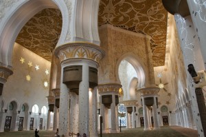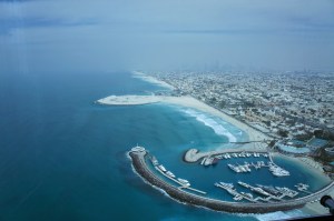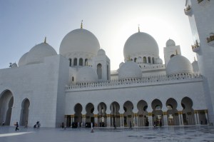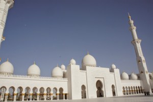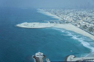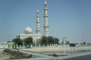 We exited the museum and wanted to head over to the Dubai creek. Our original plan was to take the dhow across the creek and then take a taxi from there back to the hotel. As we were heading over to the creek, we came by this bunch of traditional looking houses. These houses are the Bastakiya, which is the oldest residential district and was famous for its narrow lanes and wind towers. These houses are now converted into either guesthouses or art galleries. I felt these houses are rather artificial, and not that old. They all looked kinda new to me, perhaps there has been some refurbishments to these houses. We wandered into a couple of them. The first one we went to was some government office. It had a sign that says “Visitors welcome”, so we popped inside. The entrance of this house led us to the courtyard, which was moderate in size. We saw the roof and wanted to go up, but can’t find the way. Moreover, the staff inside the house doesn’t look welcoming (hmmm…. what happened to the “Visitors welcome”?), so we left the house after taking some pictures of it. We then wandered along the streets of Al Bastakiya area and saw this art gallery that seemed to be opened to the public. We went inside more to see the house and the roof then the art. We browsed through the photographic art pieces on display and asked the staff if we could take a look at the roof. The staff here are more welcoming than the other house we “barged into”, they gave us the green light to go to the roof. At the roof, I can see the houses and the wind towers. However the air-con compressors are sore to our sight, and it made the whole area looked fake. We did the touristy bit (taking some pictures) and headed to the direction of the creek. Soon we found ourselves near the creek. There is a mosque by the creek and this mockup desert area with sand and a real camel. I guess this is for the tourist to try taking a ride on the camel. As we were walking along the creek, we found this water taxi pick up point. It looked kinda deserted, just when we were waiting for a dhow to pull up, we saw one floating past us. We tried to give it a chase to see where it would stop at, due to time constraints, we gave up and took a cab back to the hotel.